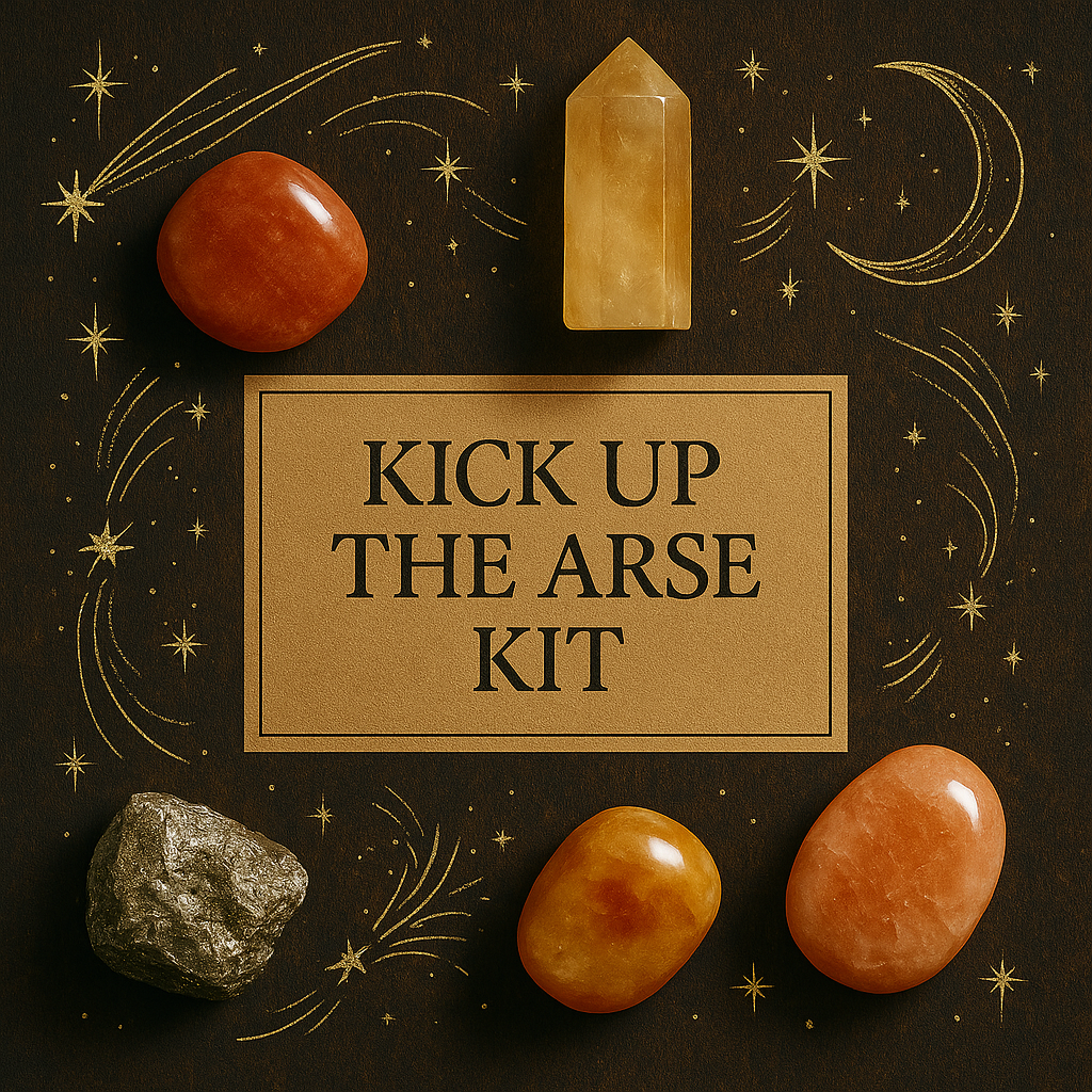Each set includes carefully chosen crystals, lovingly packaged and ready to gift — because sometimes you just need good vibes with a sense of humour.