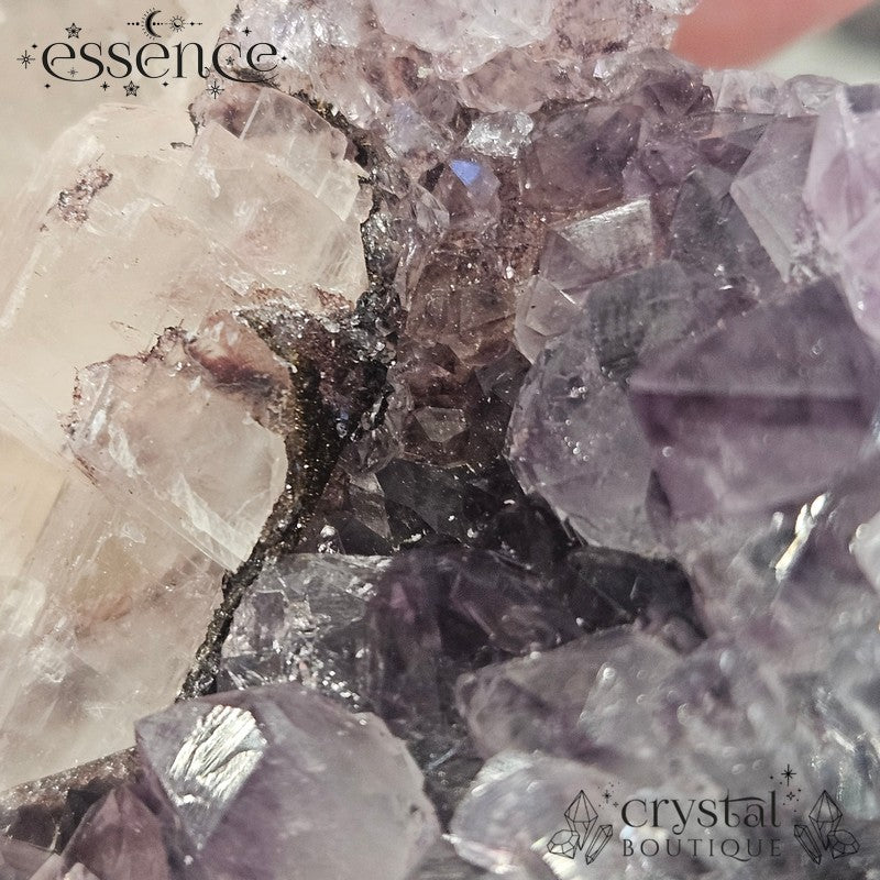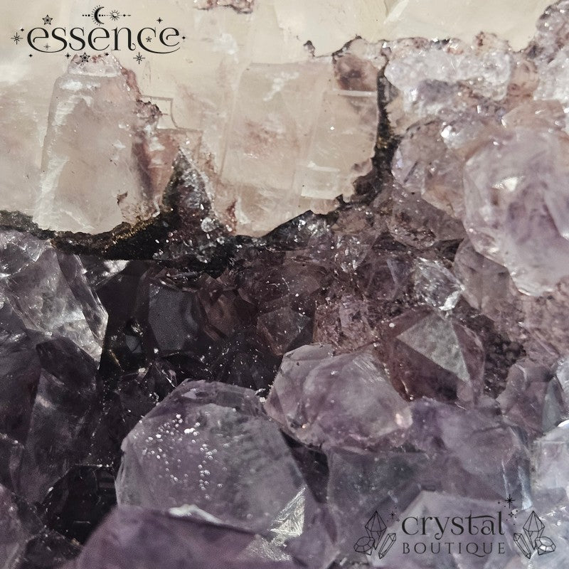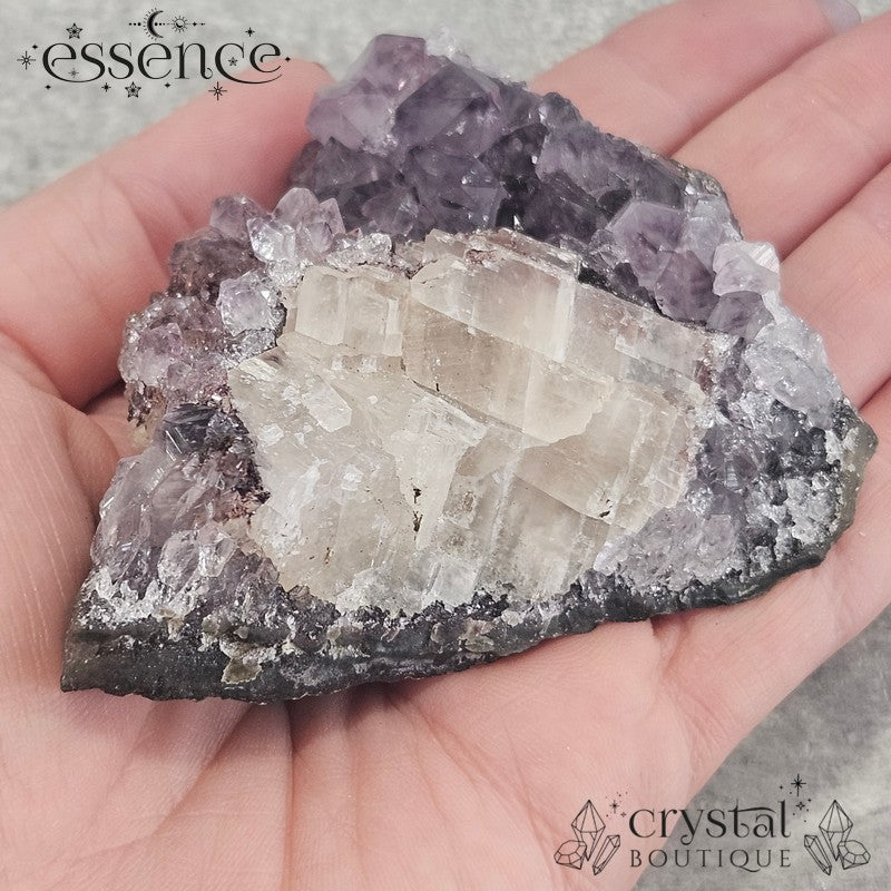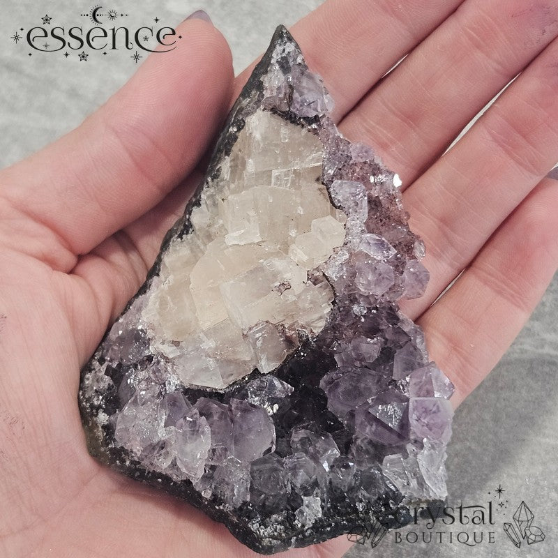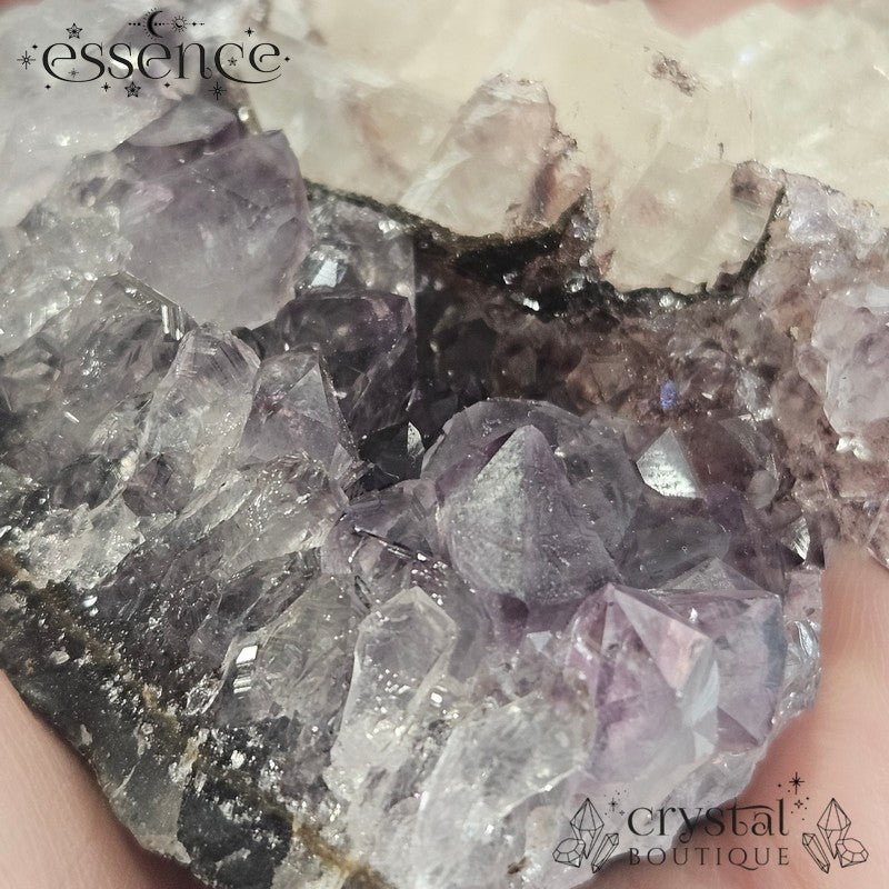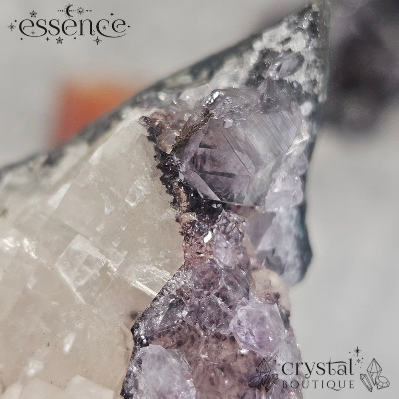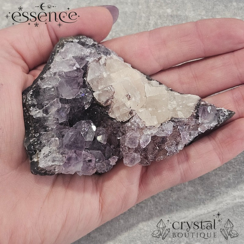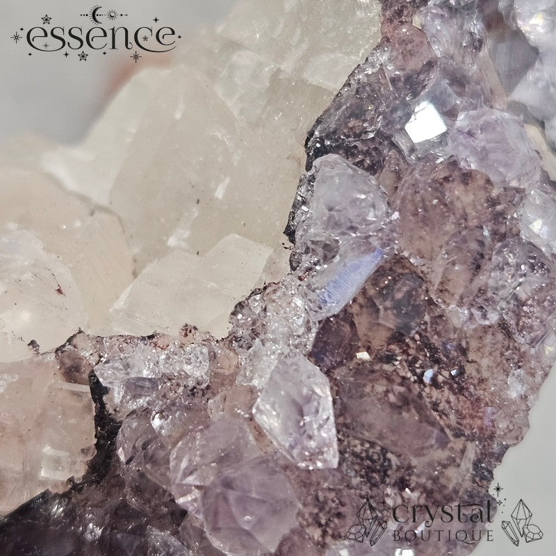 ✨ How it formed: Amethyst grows when quartz absorbs trace amounts of iron and is exposed to natural radiation deep within the Earth, giving it that signature purple glow. Calcite often forms alongside, crystallising in beautiful blocky patterns — the contrast of soft purple points and sharp Calcite makes this piece extra special.