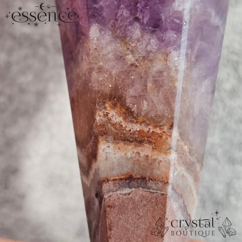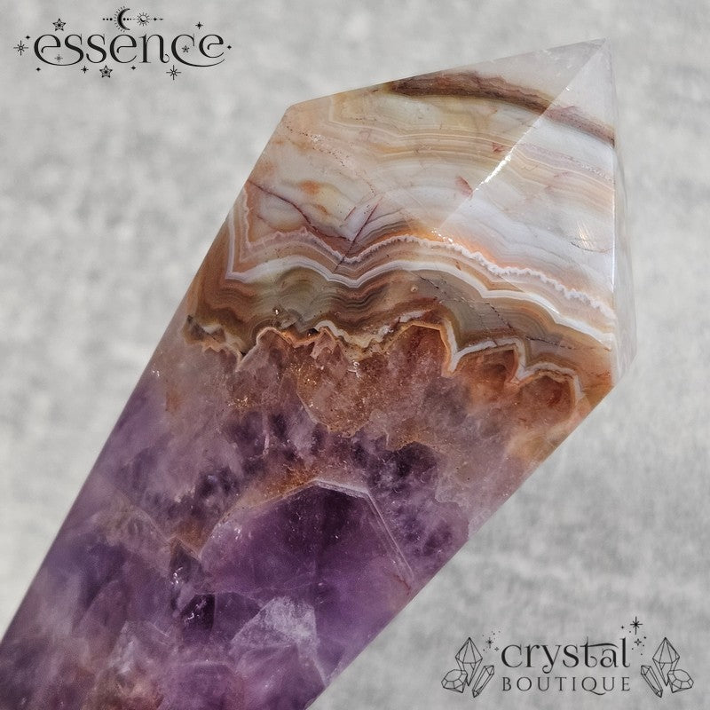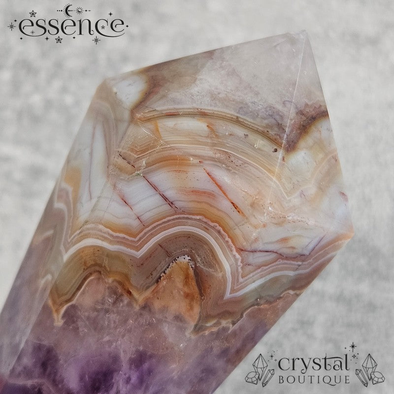 Amethyst, a beloved variety of Quartz, forms deep underground through volcanic processes. Its signature purple tones are the result of trace iron and natural radiation. Crazy Lace Agate, on the other hand, forms over millions of years as mineral-rich water fills cracks in volcanic rock, creating beautiful swirling bands of cream, caramel, rust, and soft grey.