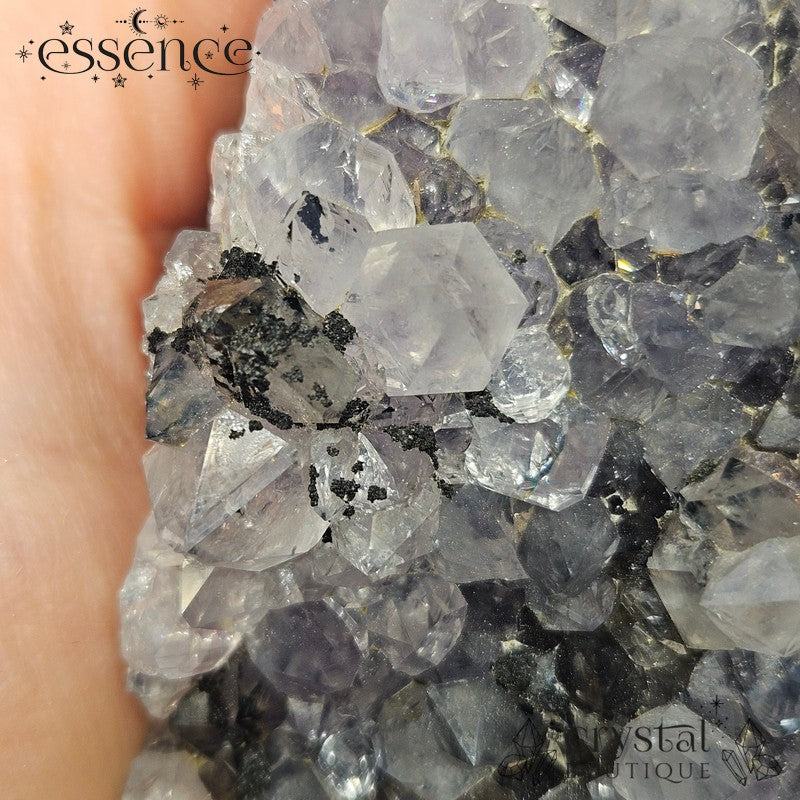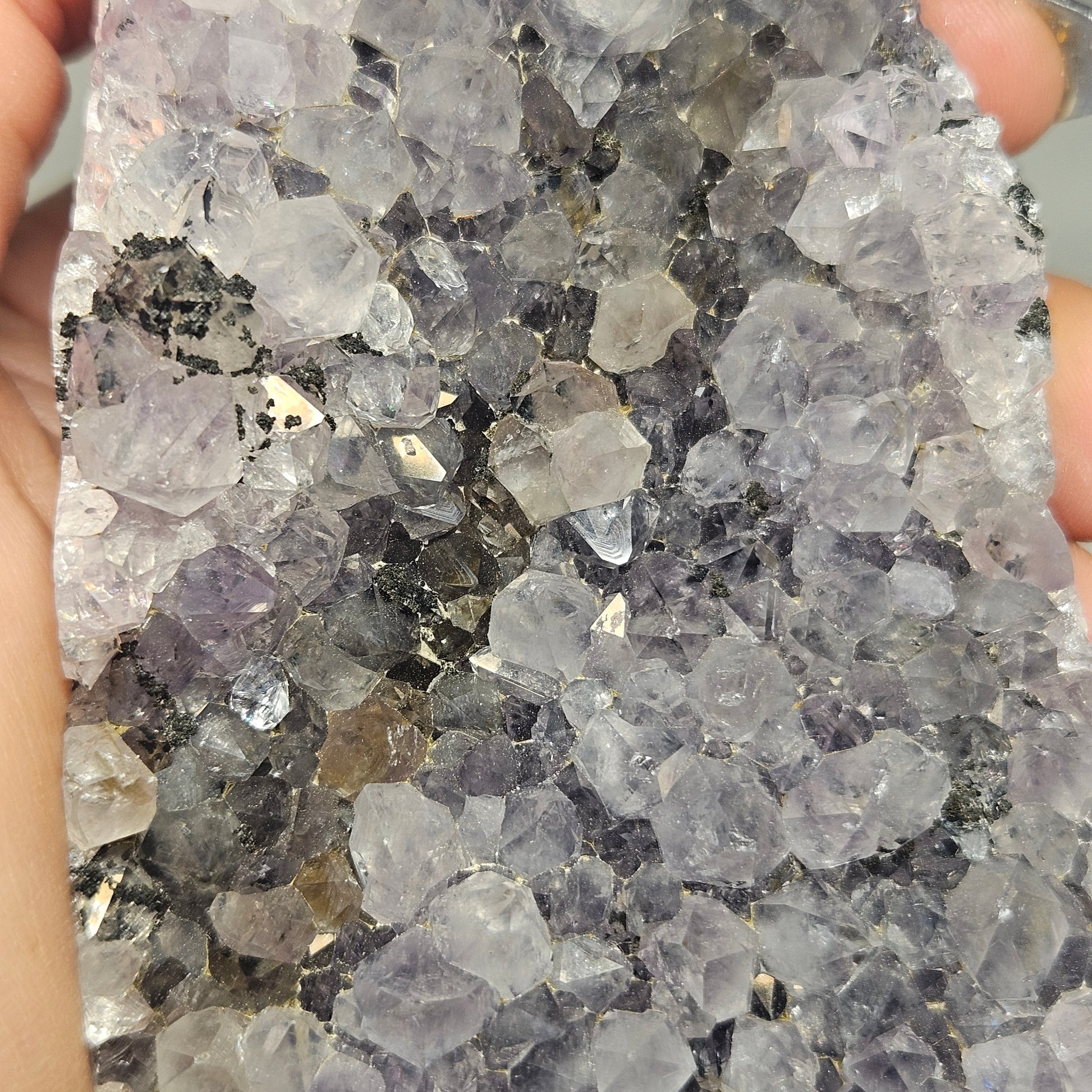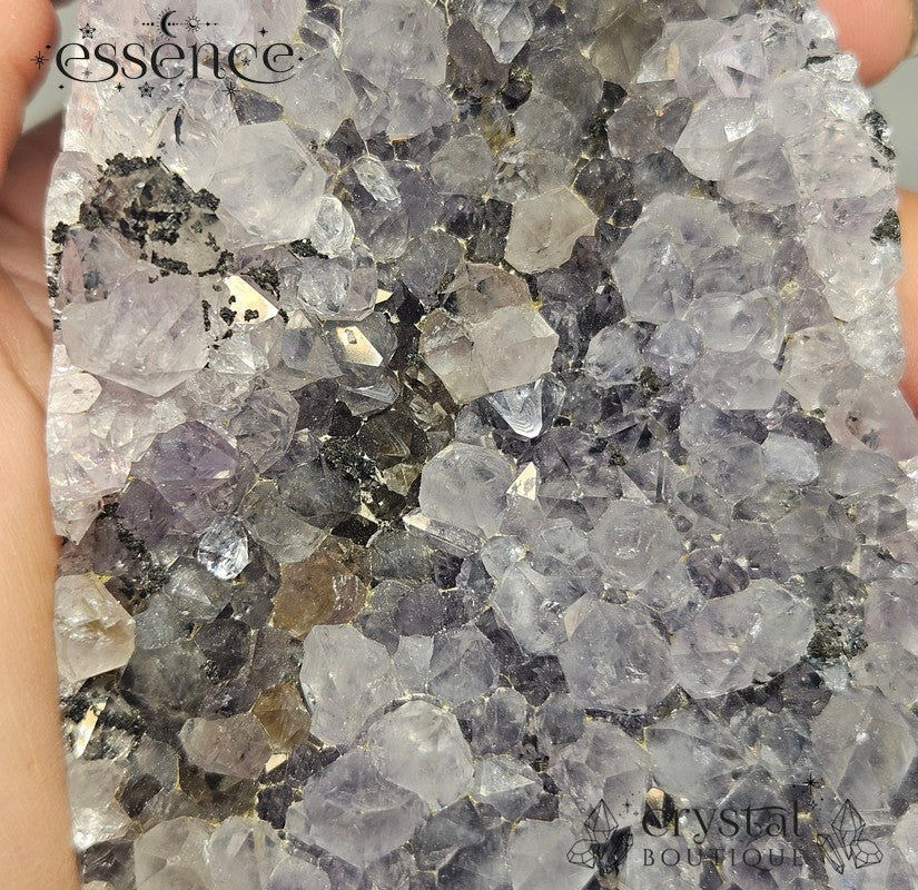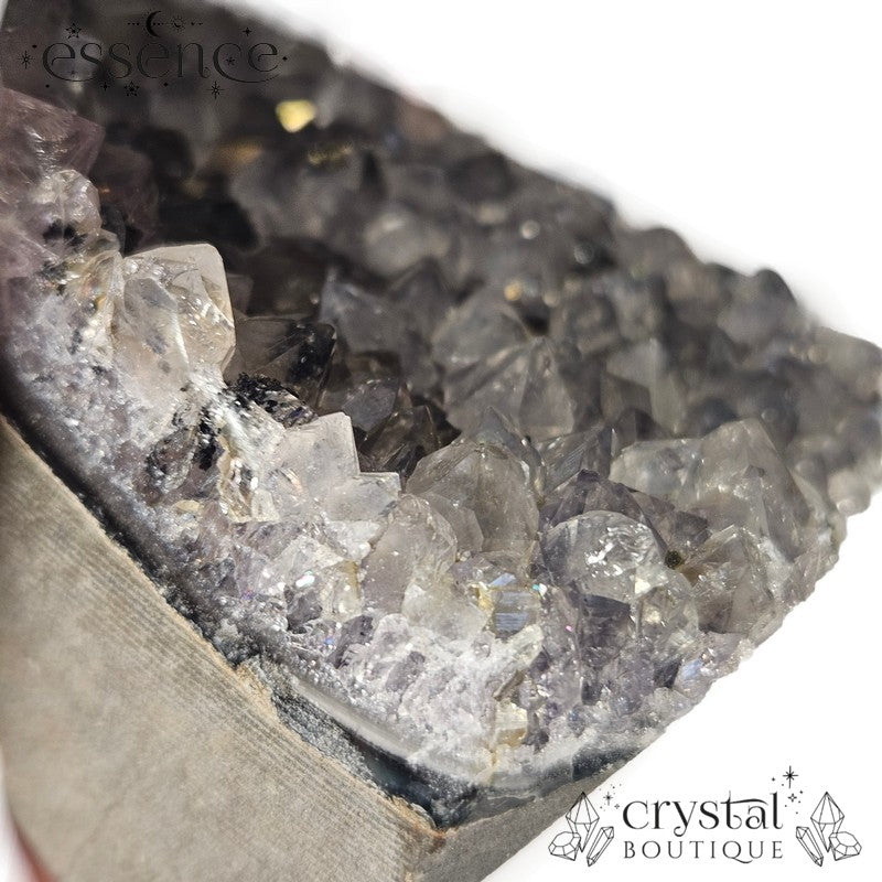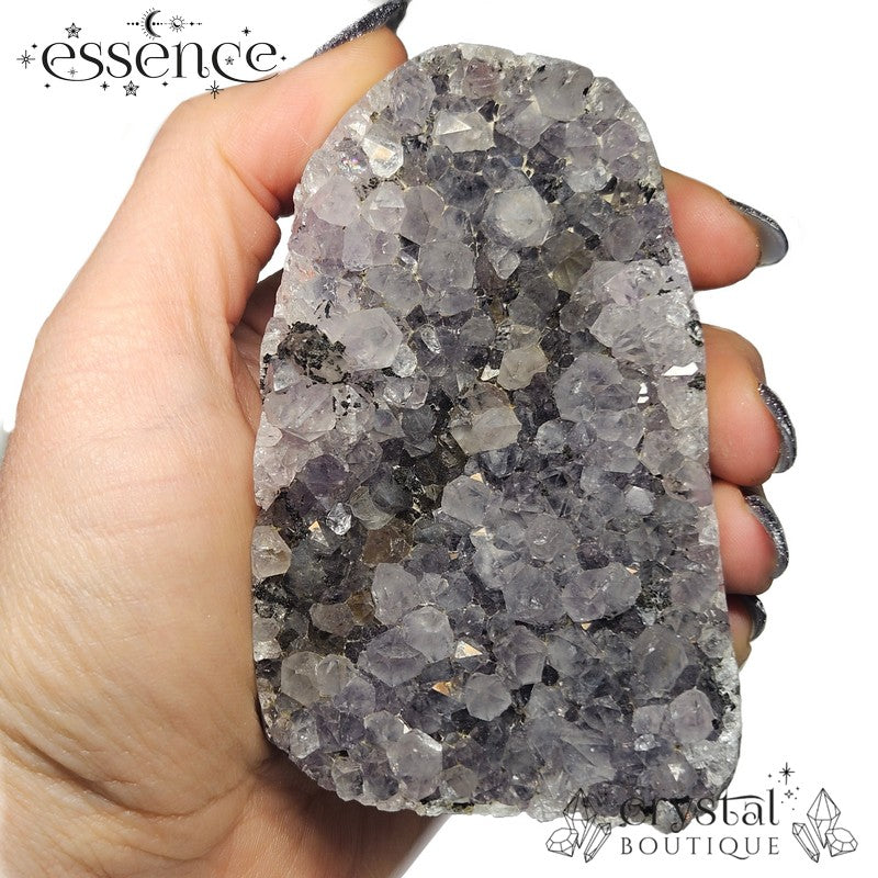 This stunning Amethyst cut base is a powerhouse of serene yet striking energy. With a balanced mix of rich royal purples, soft lilacs, and grounding black inclusions, it feels like holding a slice of twilight sky in crystal form. Perfect for display, altar work, or deep spiritual connection.