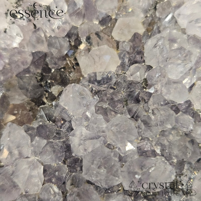 Amethyst is a type of quartz that gets its purple colour from iron and natural irradiation during formation deep within volcanic rock. Over millions of years, geodes and crystal cavities fill with these purple points – each one growing slowly in silence. The black areas you see is often hematite anchoring the stone with earthy energy.