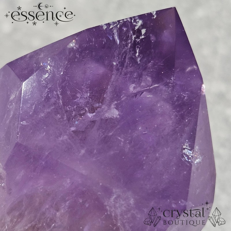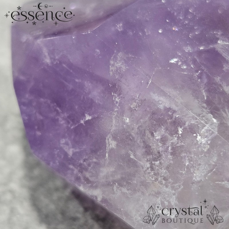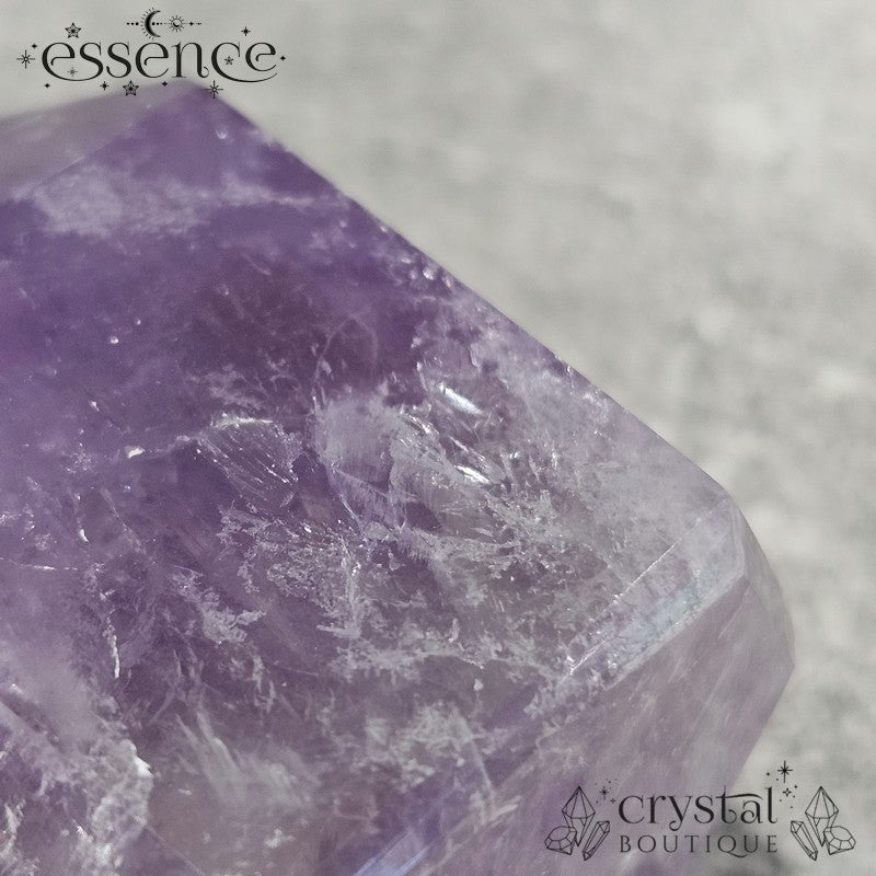 If you’re into soft Quartz transitions and dreamy fades, this one’s for you. It starts with a rich violet point and blends down into misty lilac at the base, like someone slowly dialed the saturation down. There are soft inclusions throughout and a few cloudy spots that give it a calm, slightly mysterious look.