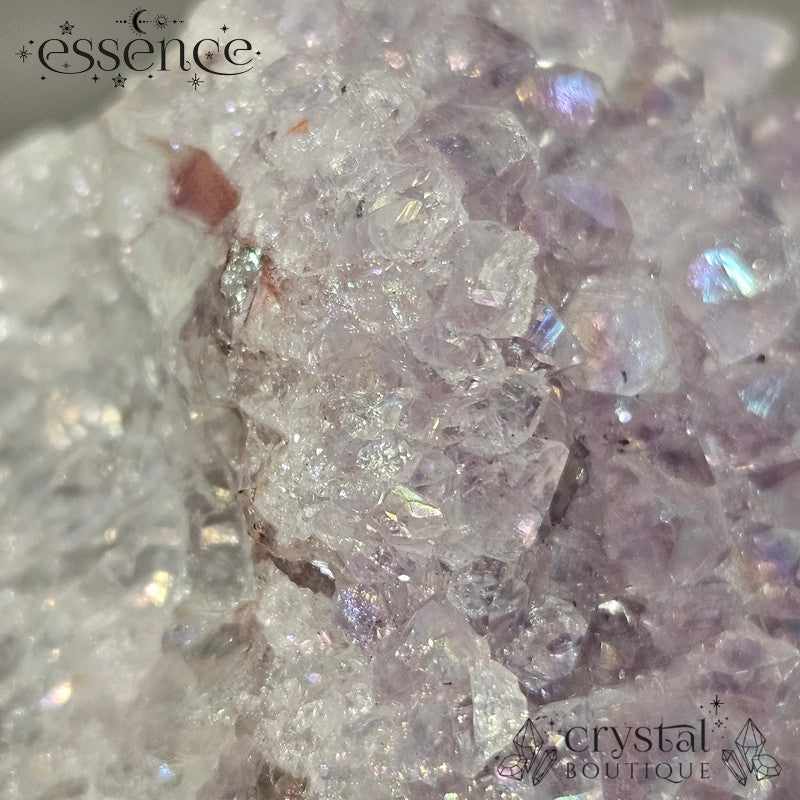 Bring some cosmic charm into your life! This gorgeous Aura Amethyst druzy chunk radiates an iridescent glow, catching the light from every angle. If you’re all about that shimmer and sparkle, this beauty is meant for you!