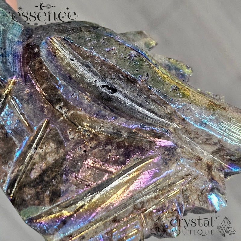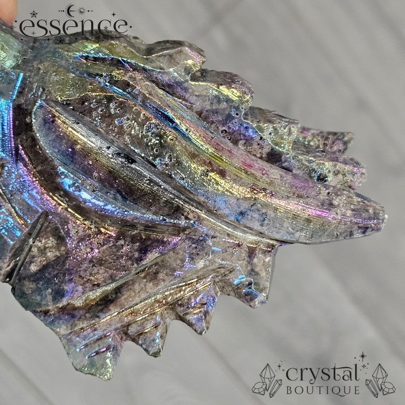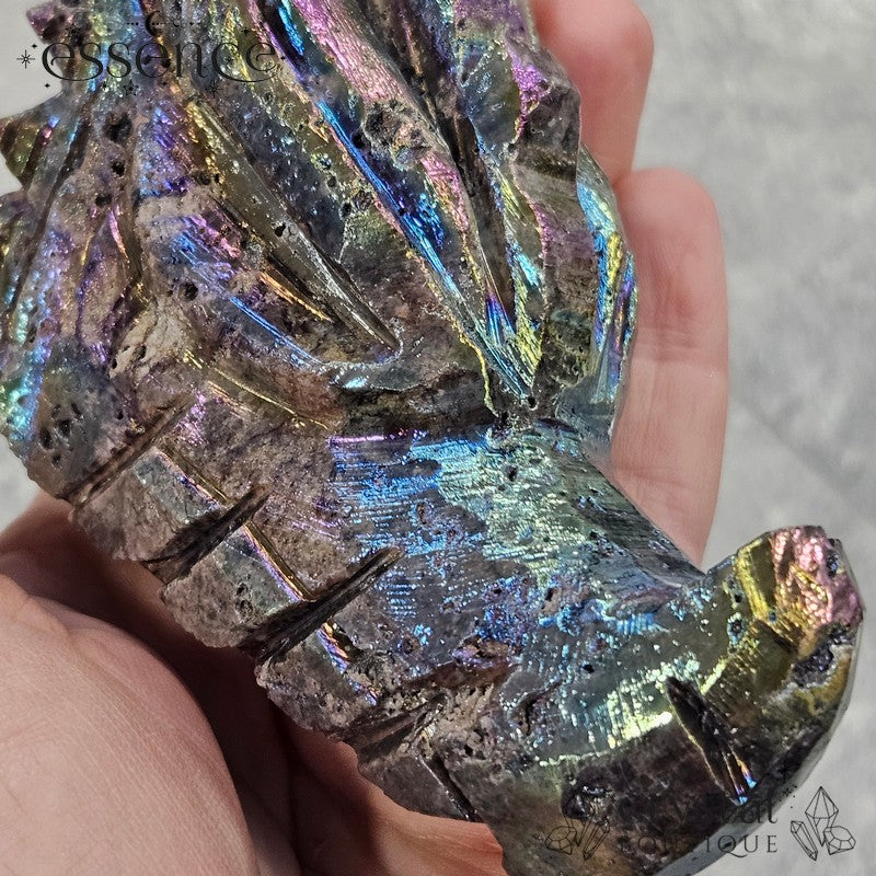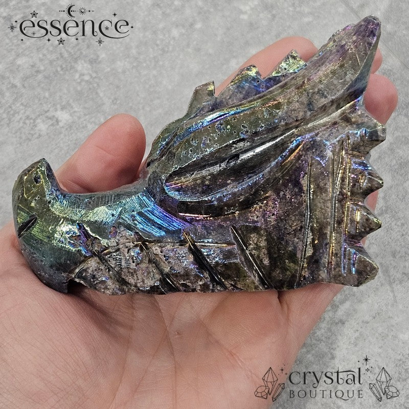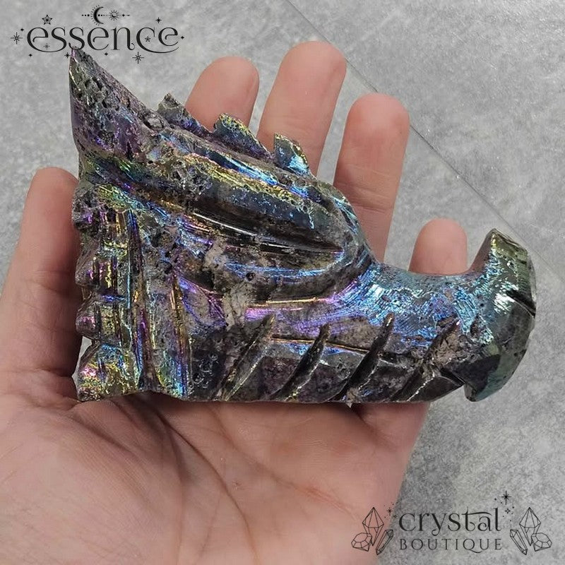 Unleash the power of this breathtaking Aura Sphalerite Dragon Head—a rare fusion of raw earth energy and cosmic iridescence. With 364g of pure magic, this carved guardian is not just a crystal—it's a force to be reckoned with!