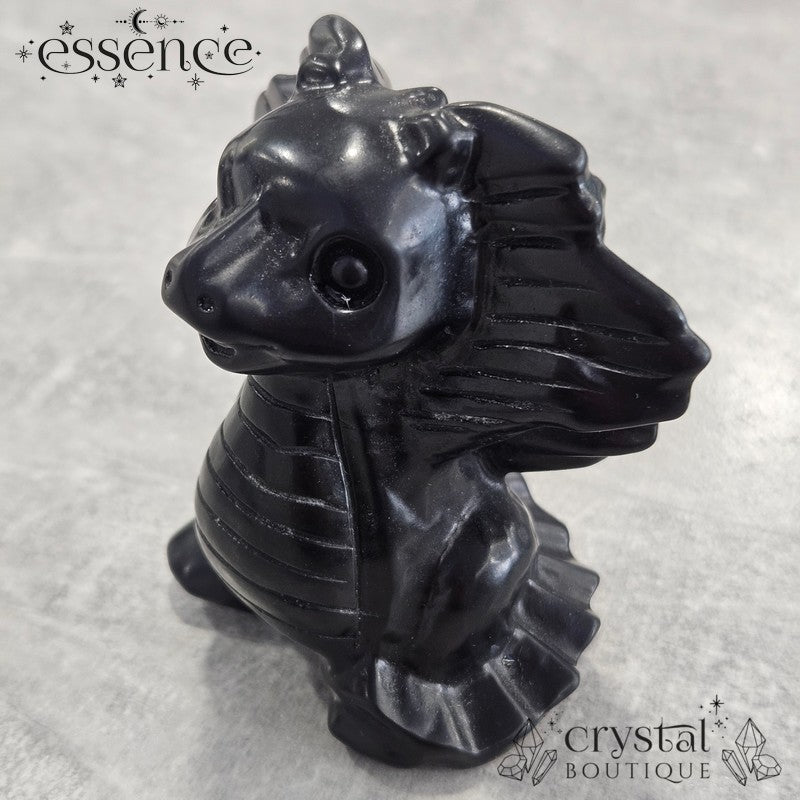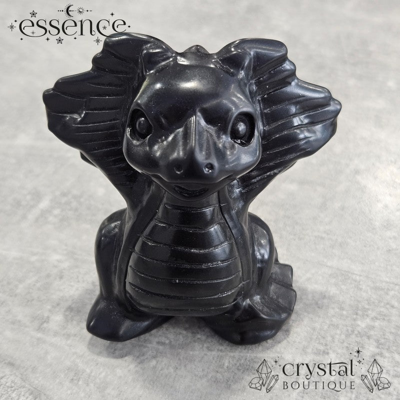 Meet the Midnight Guardian, a one-of-a-kind 204g hand-carved Black Obsidian dragon full of bold energy and mischievous charm.