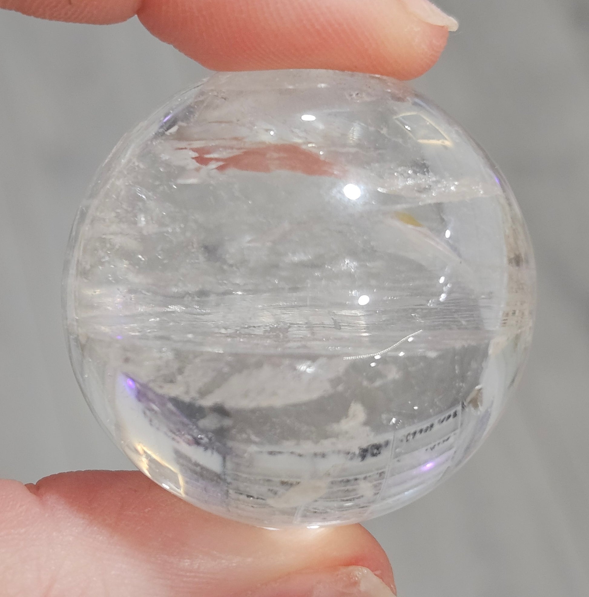 This crystal-clear Brazilian Quartz sphere is full of soft internal wisps, shimmering light refractions, and those tiny surprise rainbows that show up the moment you tilt it toward a lamp or sunlight. It has a gorgeous “frost + glass” balance — clear enough to scry through, textured enough to feel alive.