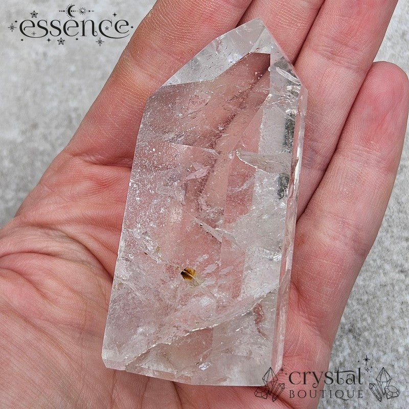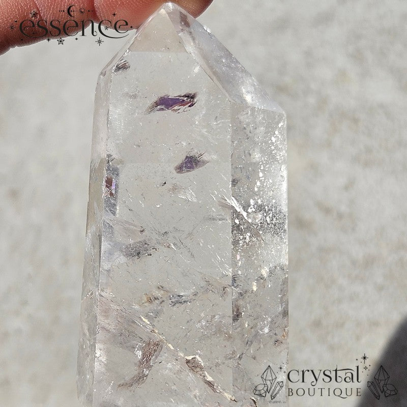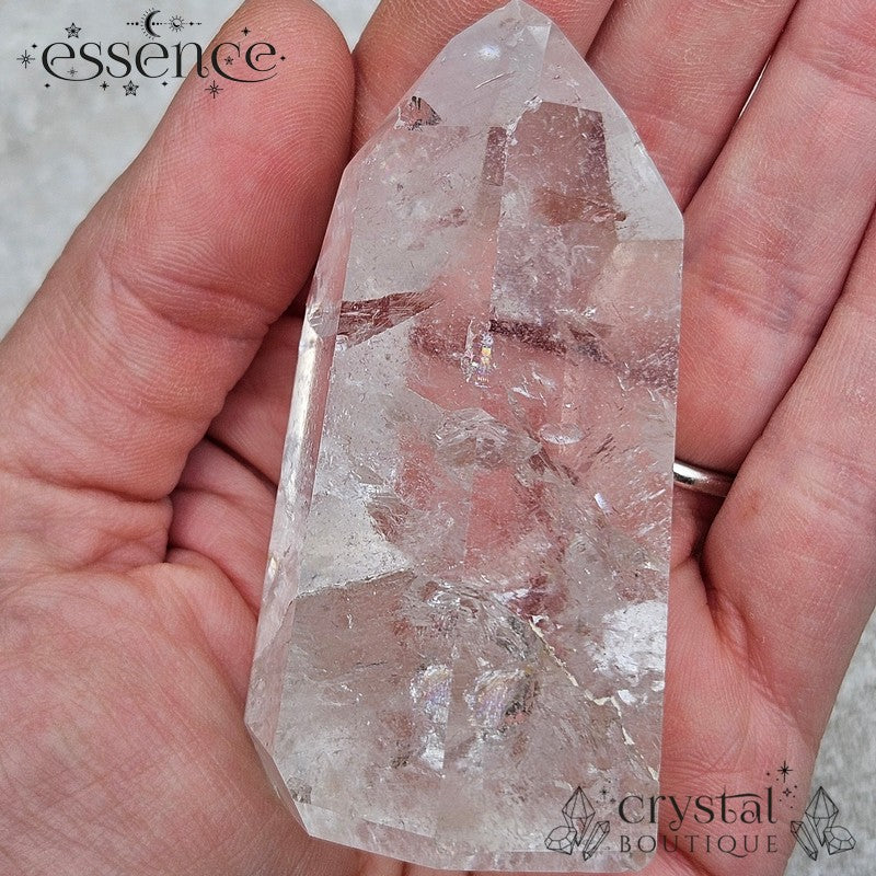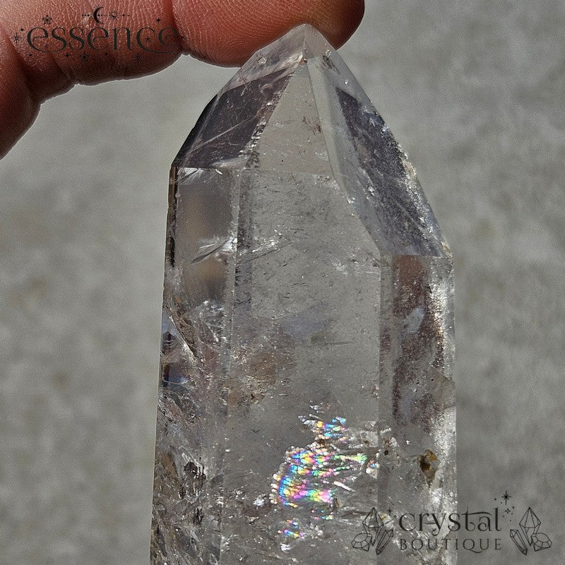 Handpicked for its clarity and natural beauty, this Clear Quartz tower is a pristine example of nature’s craftsmanship. Including natural inclusions and beautiful rainbows.