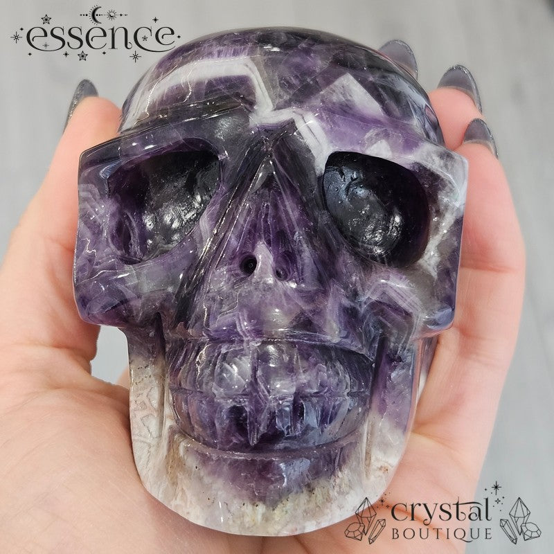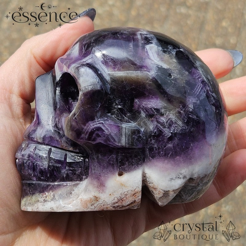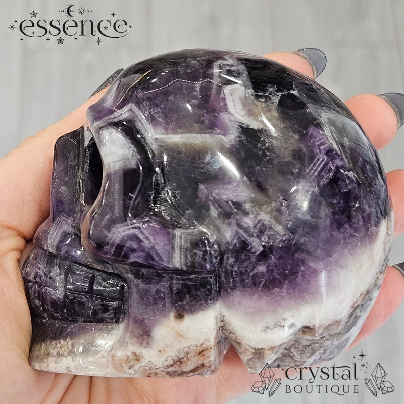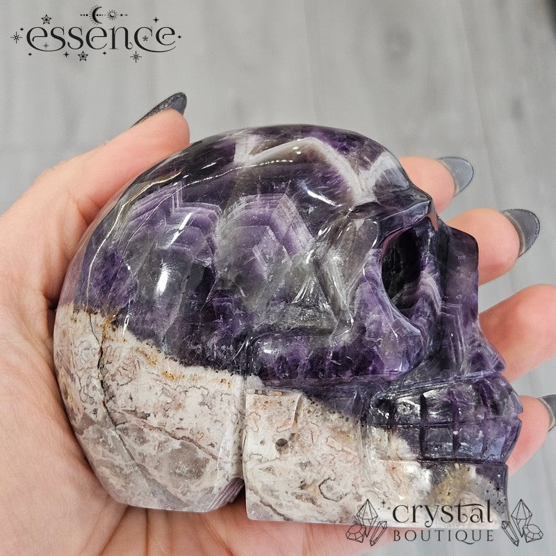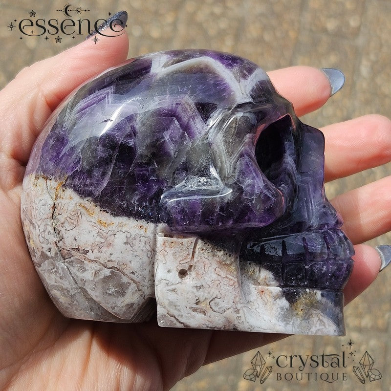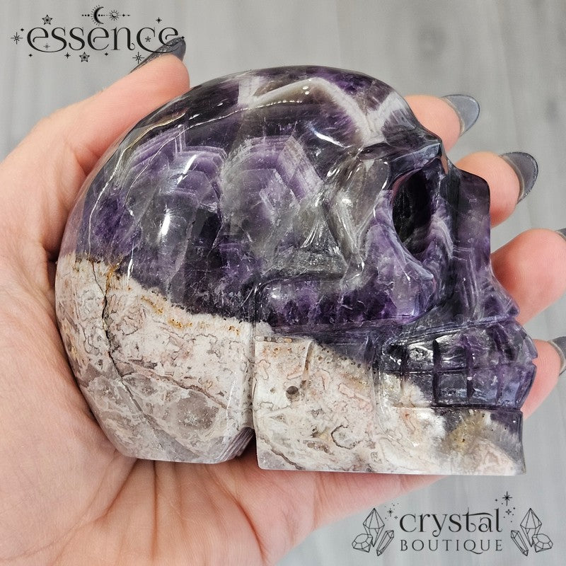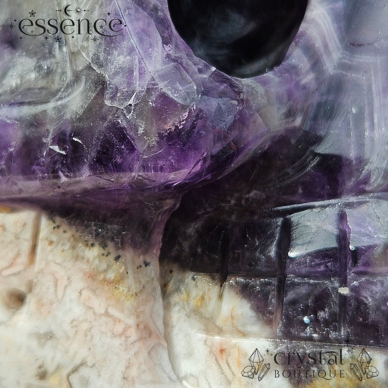 đź’€ Chevron Amethyst Skull with Flower Agate | 592g