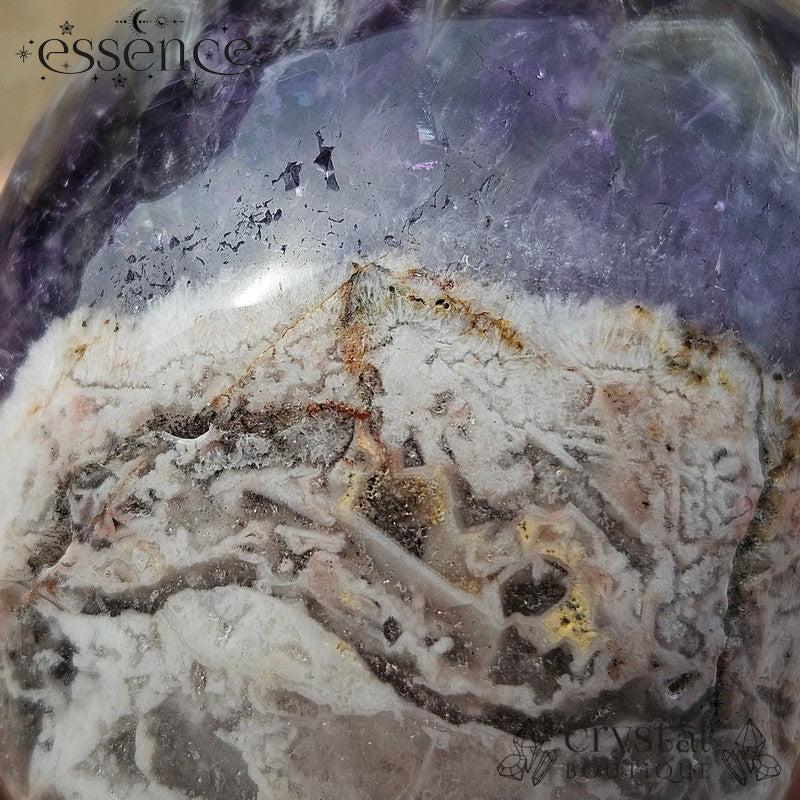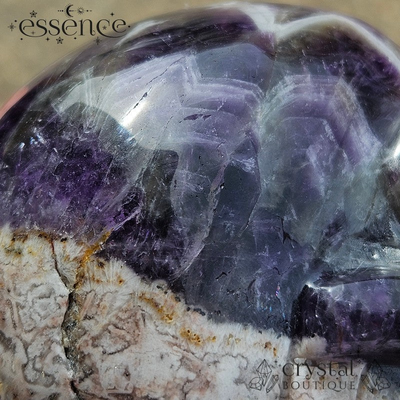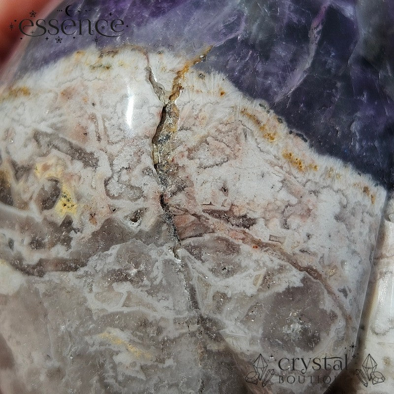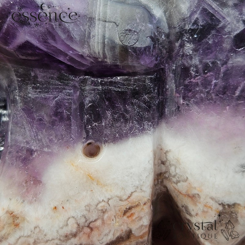 Chevron Amethyst – Recognisable by its striking V-shaped patterns, this type of Amethyst is layered with White Quartz. It’s known for enhancing intuition, clearing the mind, and supporting spiritual insight.
