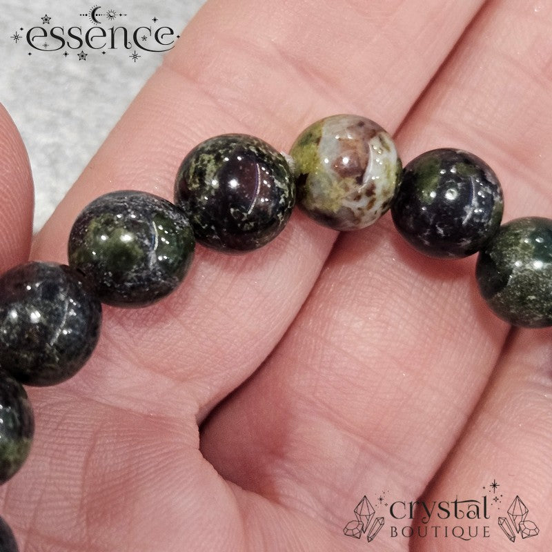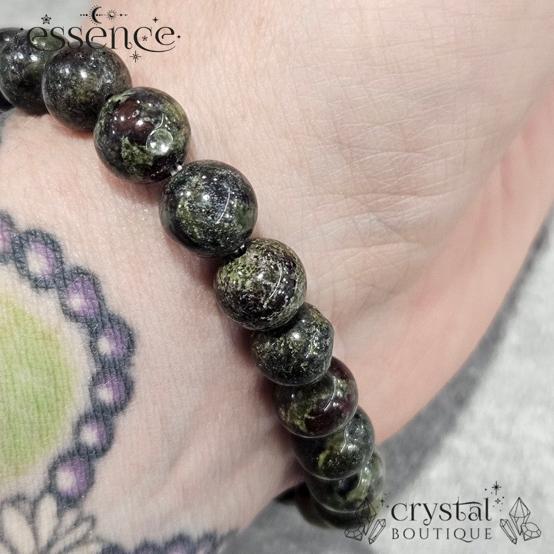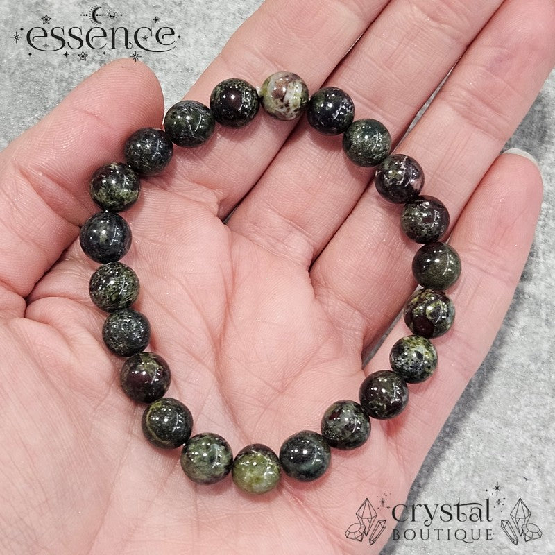 Unleash your inner strength with this bold Dragon Blood Jasper Bracelet, featuring deep green and crimson hues reminiscent of ancient dragon scales. Known as the "stone of courage," Dragon Blood Jasper is a powerful ally for those seeking balance, motivation, and emotional resilience.