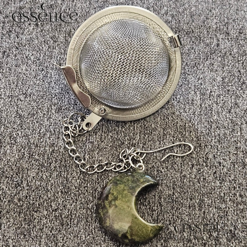 Dragon Blood Jasper Moon Stainless Steel Tea Strainer – Brew with Strength & Vitality
