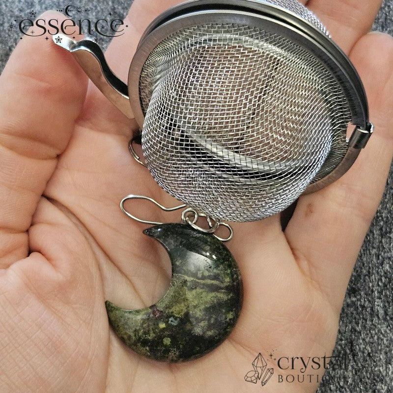 Unleash the power of Dragon Blood Jasper in your tea ritual! This Dragon Blood Jasper Moon Tea Strainer features a striking Dragon Blood Jasper moon charm attached to a high-quality stainless steel strainer—infusing your tea time with strength, courage, and grounding energy.