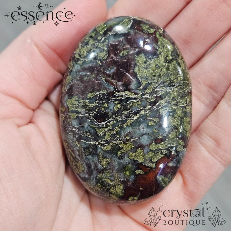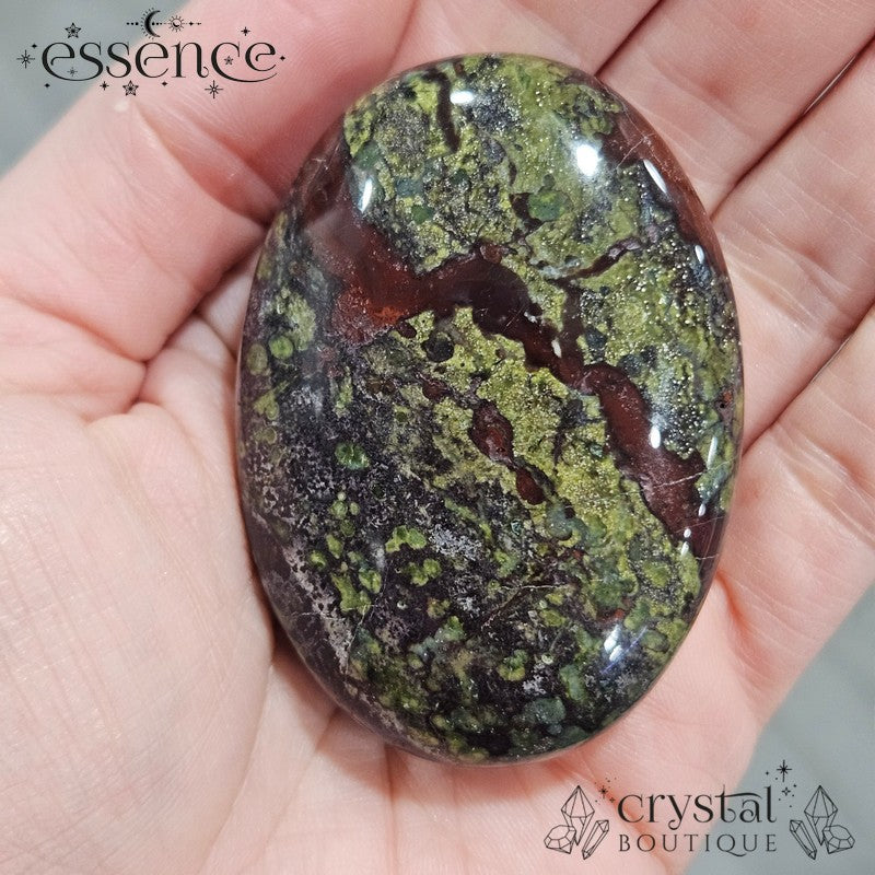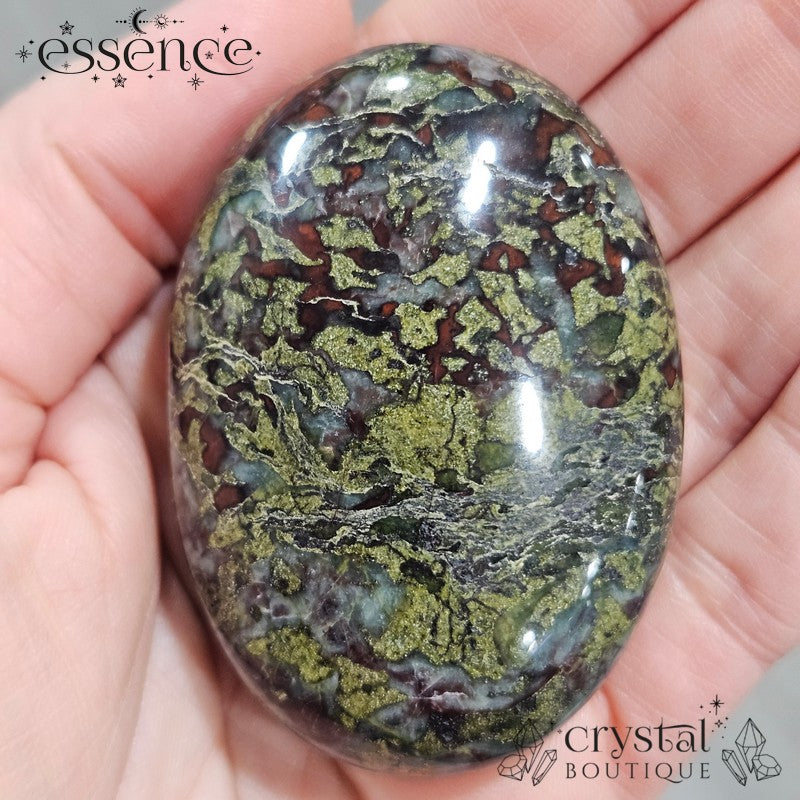 These Dragon Blood Jasper palm stones look like they’ve been plucked straight from a mythical forest floor — deep earthy reds and mossy greens that swirl together like dragon scales. Bold, grounding, and full of ancient energy, each piece is completely unique.