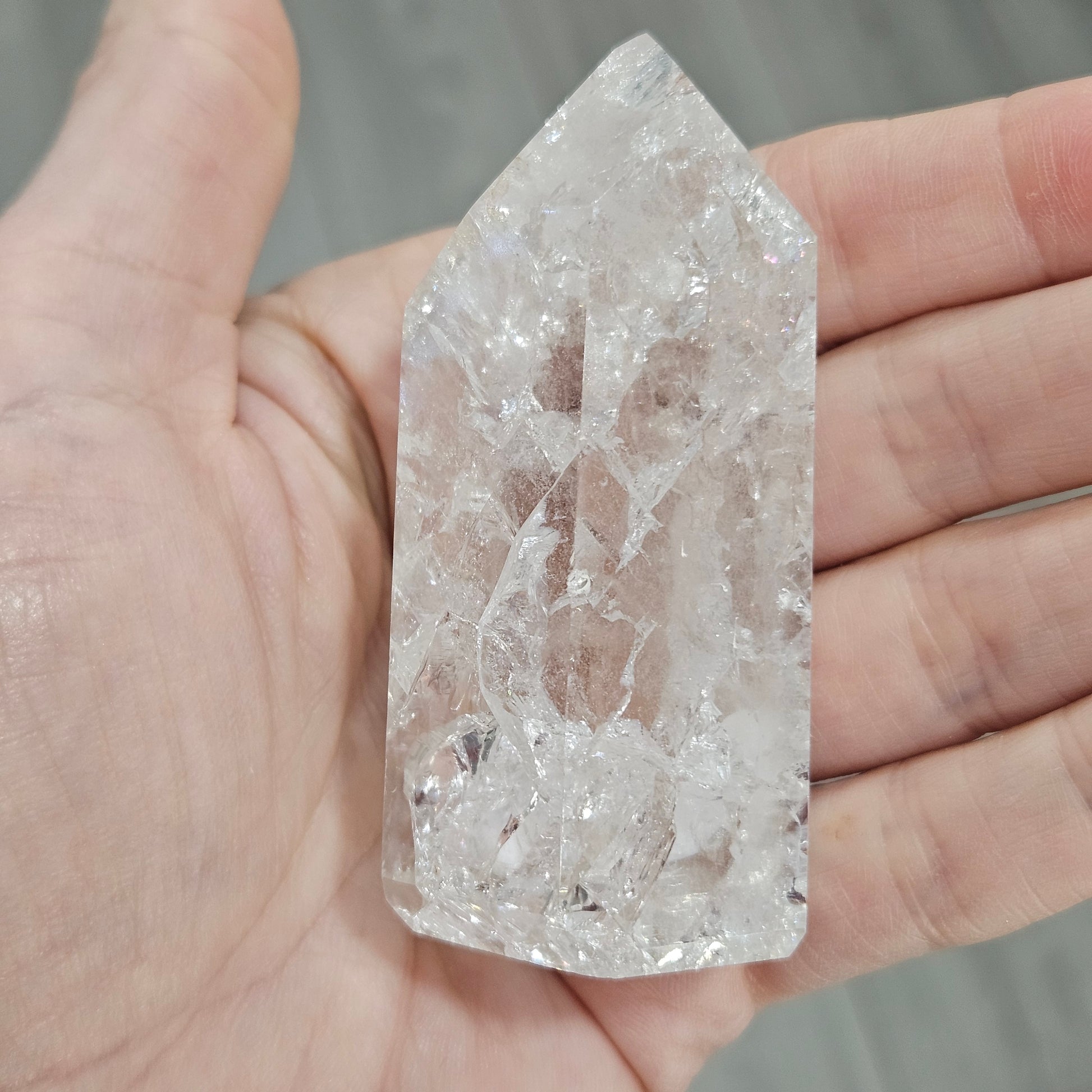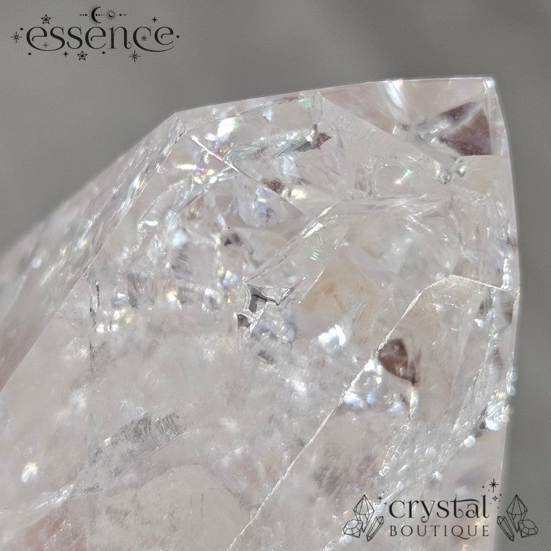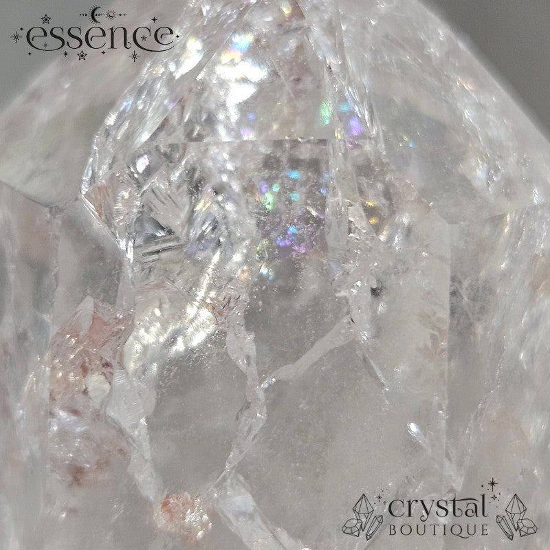 Also known as Crackle Quartz, this variety of Clear Quartz is created when natural quartz undergoes intense heat, then is cooled rapidly — forming intricate internal fractures that scatter light into rainbows. It’s known for amplifying energy, clearing blockages, and bringing renewed balance and vitality.