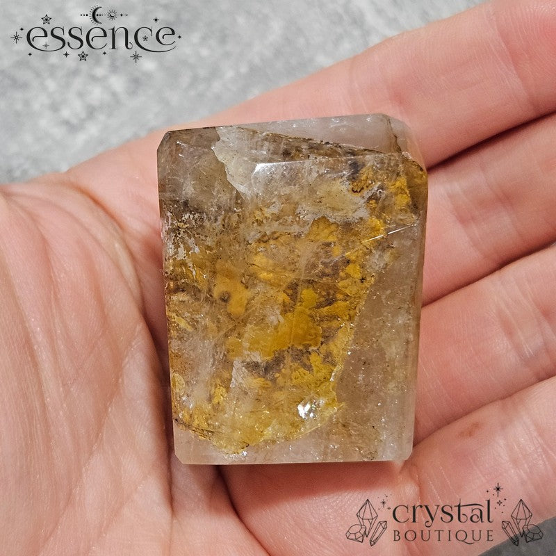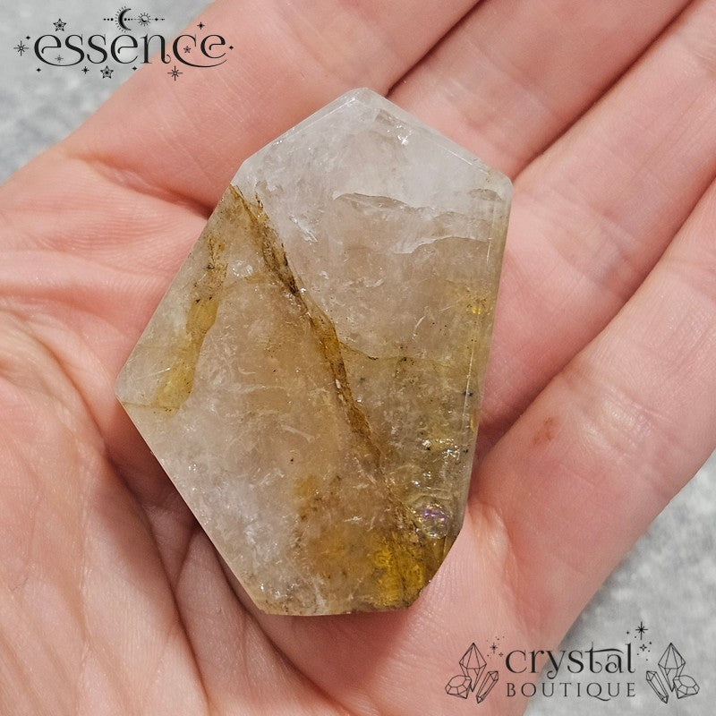 This 84g freeform might be smaller in size, but it’s full of character. Shimmering with soft amber tones and translucent patches, it catches the light beautifully from every angle. Whether you pop it on your desk, altar, or carry it in your bag, it’s like carrying a warm hug around with you—minus the awkward small talk.