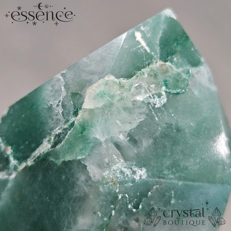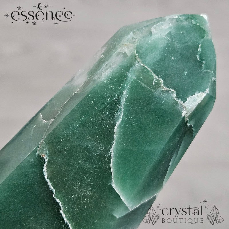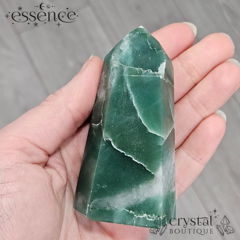 🌿This Brazilian Green Aventurine tower is a striking fusion of nature’s artistry and energetic depth. Its forest-green body is interlaced with stunning veins and clouds of Clear Quartz, forming a natural contrast that draws the eye and elevates its energetic properties.