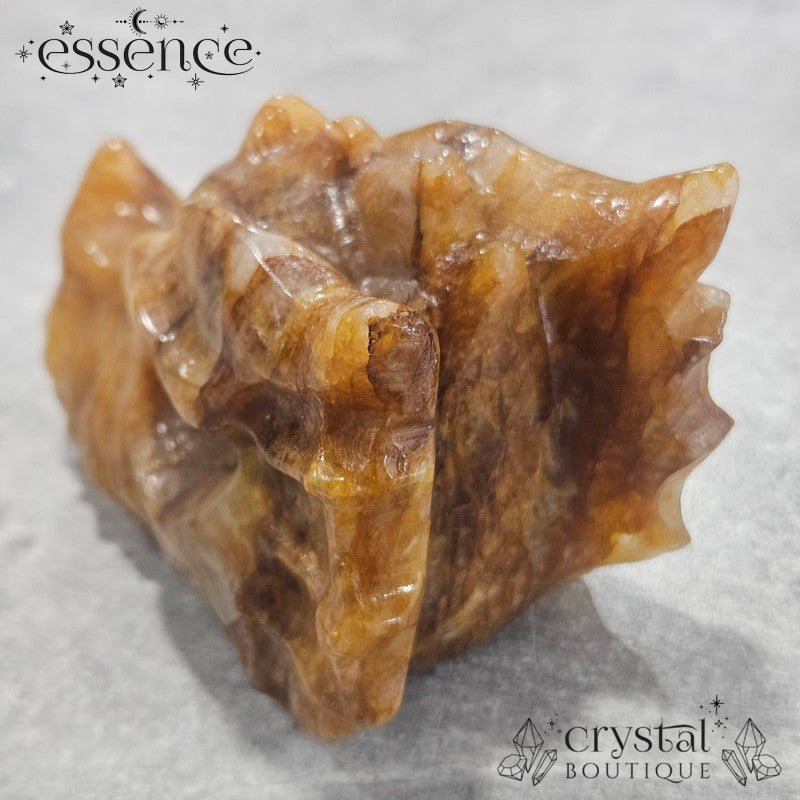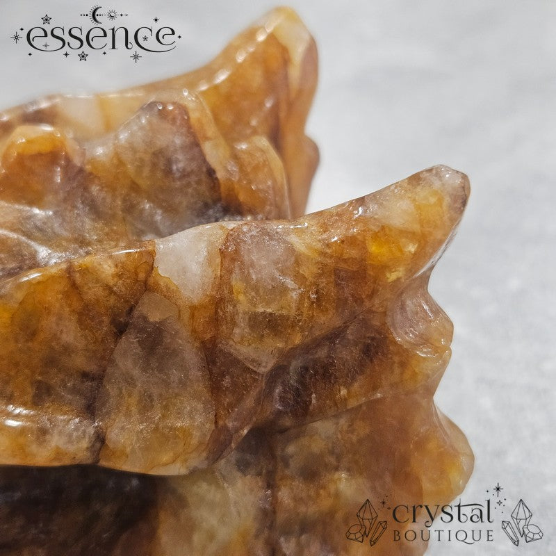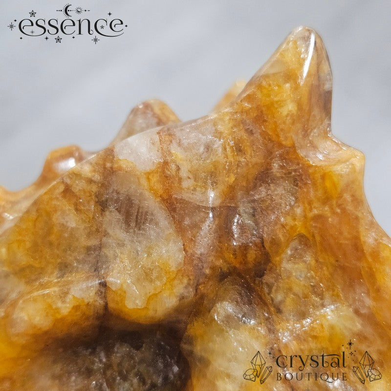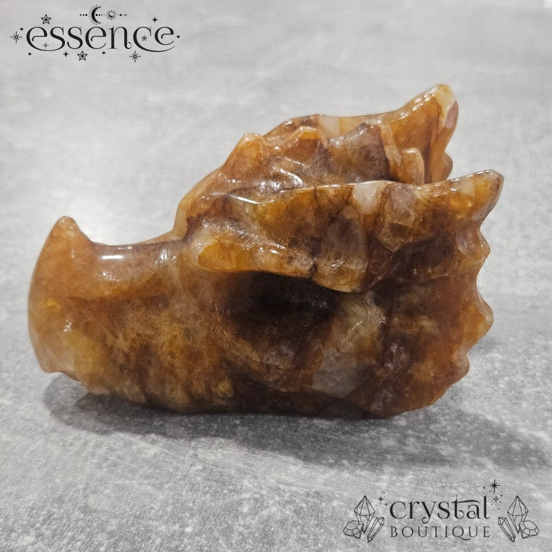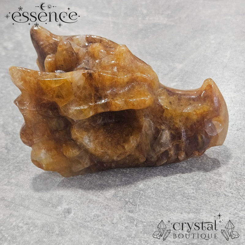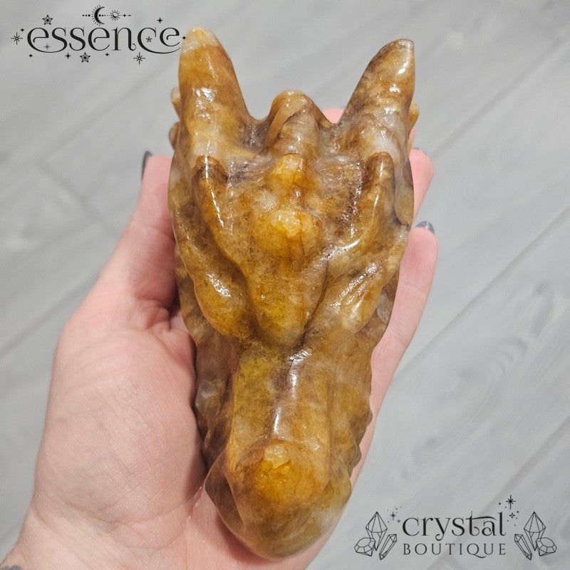 This powerful, high-grade Golden Healer Quartz dragon head weighs in at a bold 631 grams and glows with fiery gold, amber, and honey tones โ a true embodiment of strength, vitality, and spiritual power. With layers of transparency, deep mineral warmth, and polished definition, this is more than just a carving โ itโs a statement.