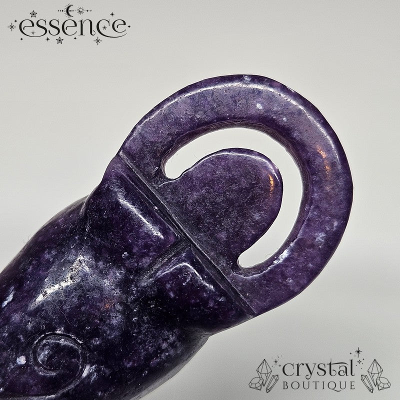 This beautifully carved Lepidolite goddess carries a quiet strength and soothing aura. With calming lilac tones and a natural shimmer, she’s here to bring emotional balance, peace, and a touch of lunar magic to your space.