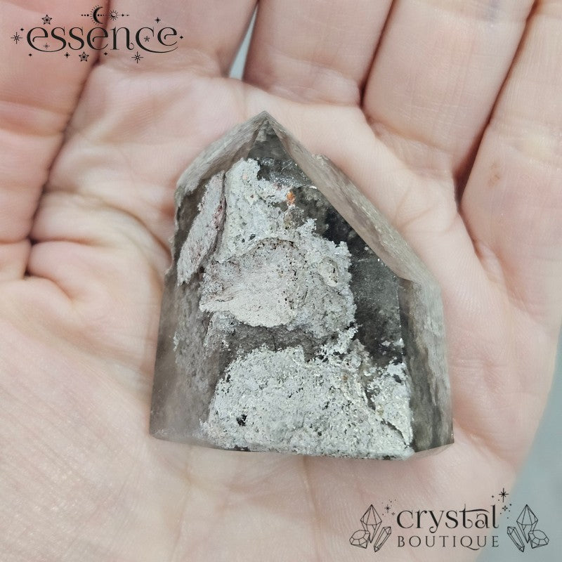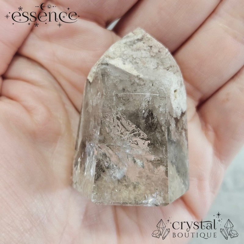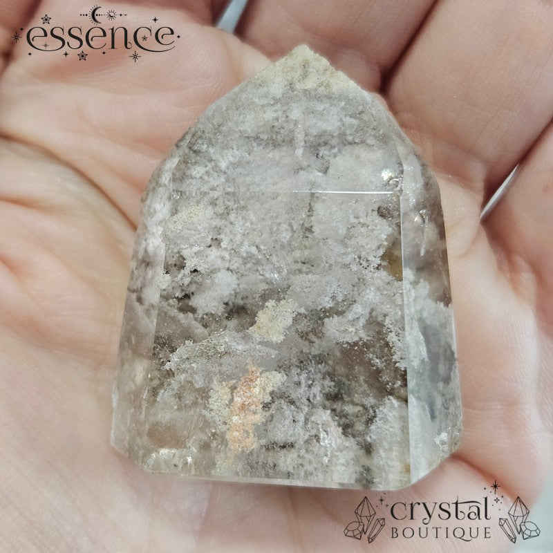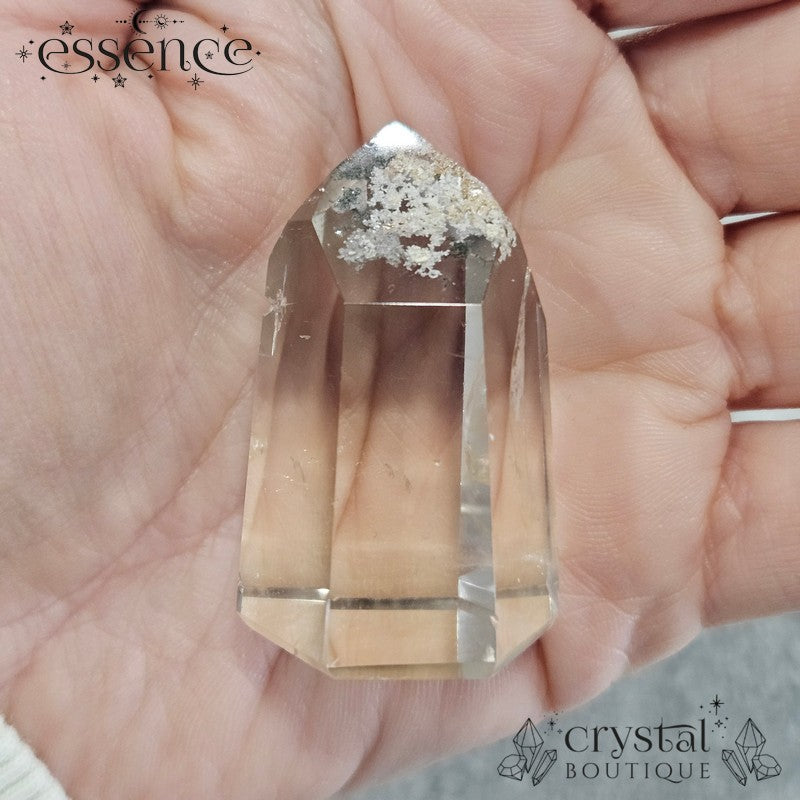 A clearer tower with soft internal clouding and lighter inclusions. Subtle, airy, and very easy on the eye — a great choice if you like your crystals calm rather than busy.