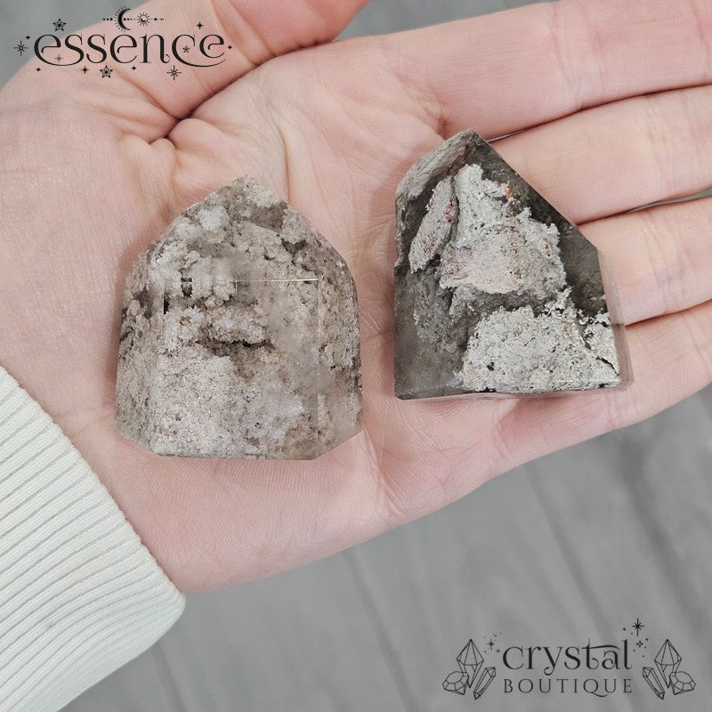 Lodolite (also known as Garden Quartz) forms when quartz grows around other minerals such as chlorite, feldspar, or iron-rich material. Over millions of years, these inclusions become trapped inside the crystal, creating the layered, mossy, or sediment-like patterns you can see throughout each piece.