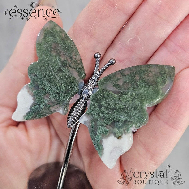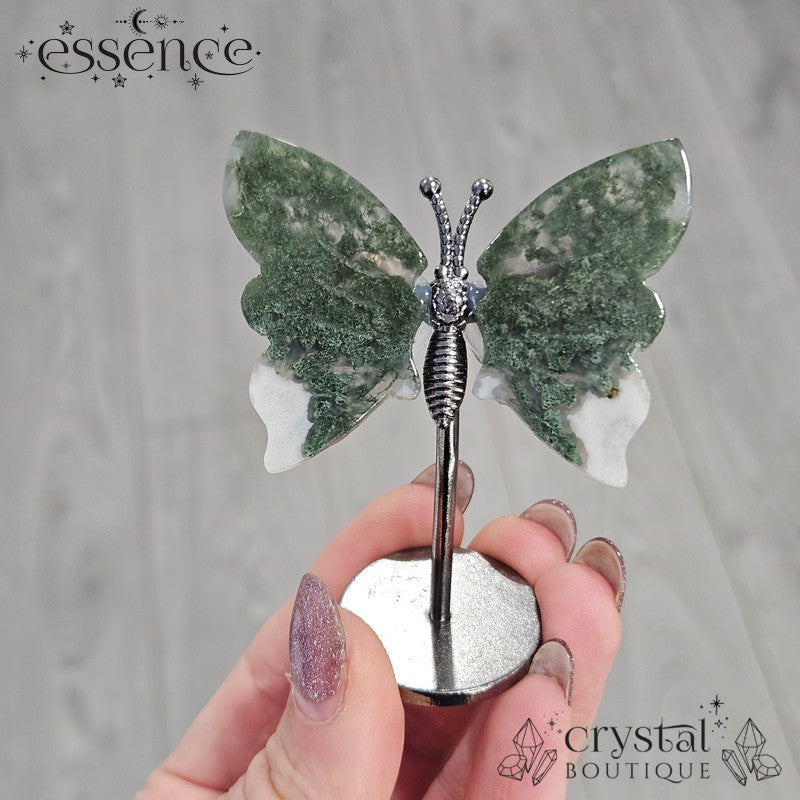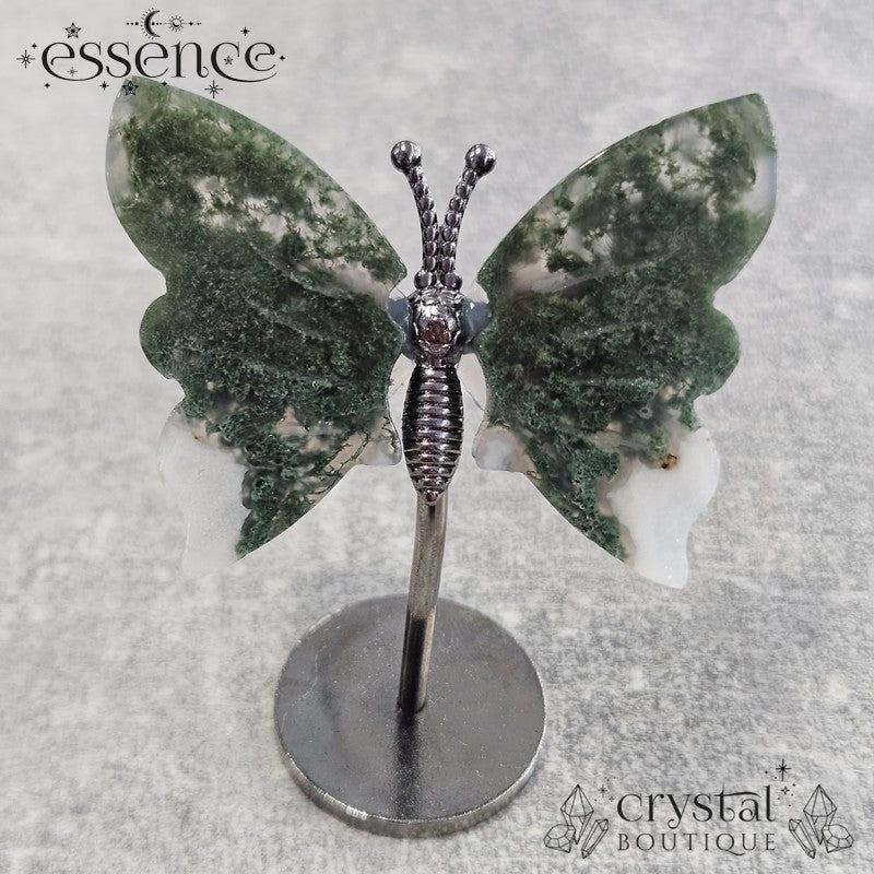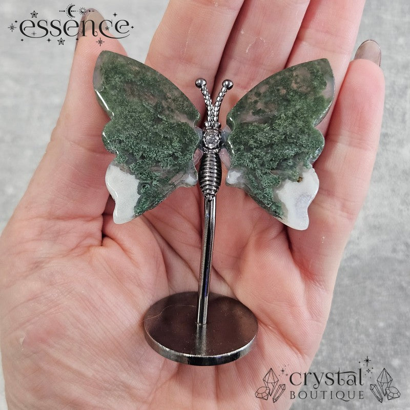 Moss Agate Butterfly on a stand