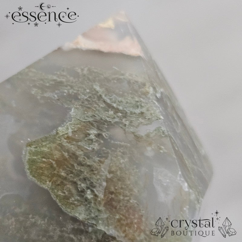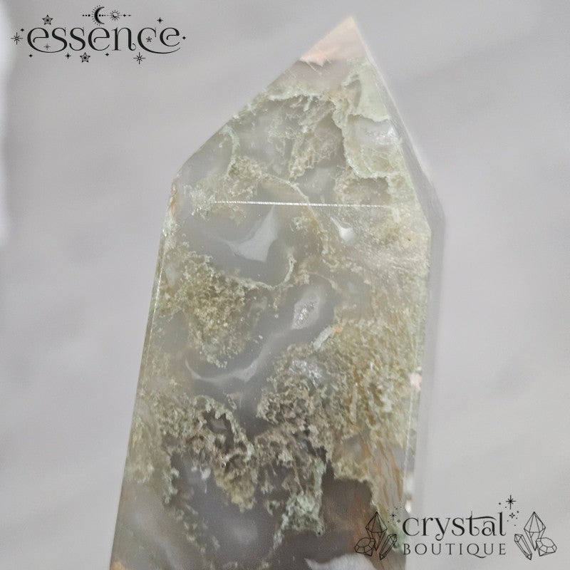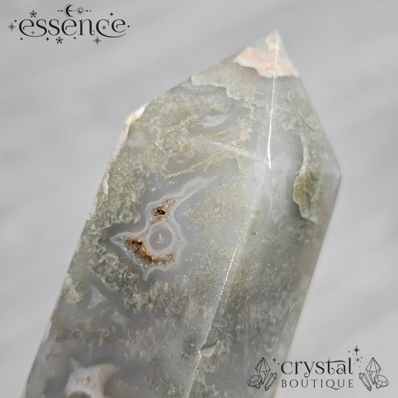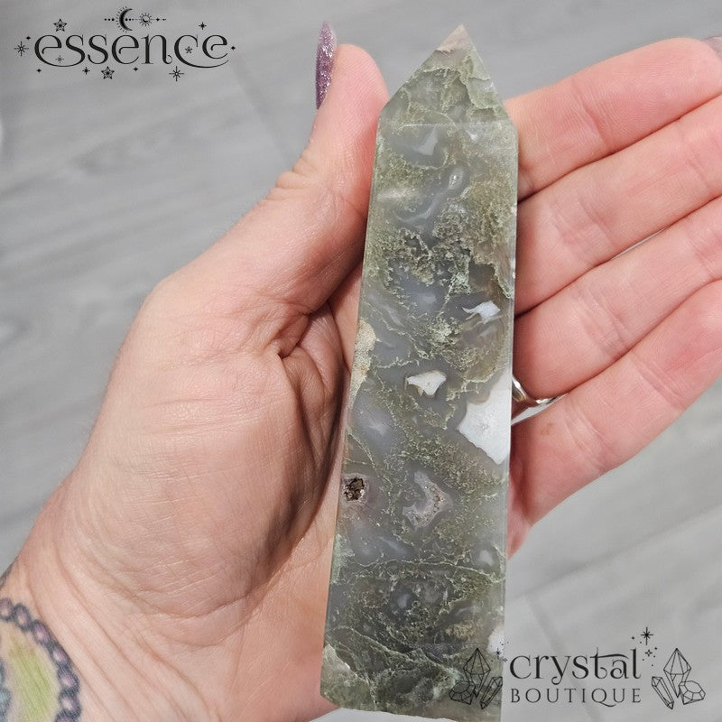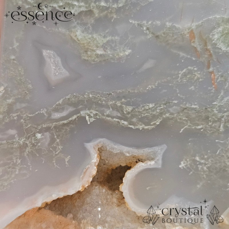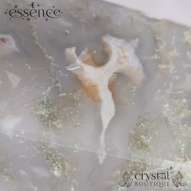 Moss Agate is formed when mineral-rich water seeps through volcanic rock, depositing layers of silica and minerals like chlorite or iron. Over time, these settle into mossy, root-like inclusions and sometimes form cavities that fill with quartz crystals—those little hidden sparkles nature leaves behind.