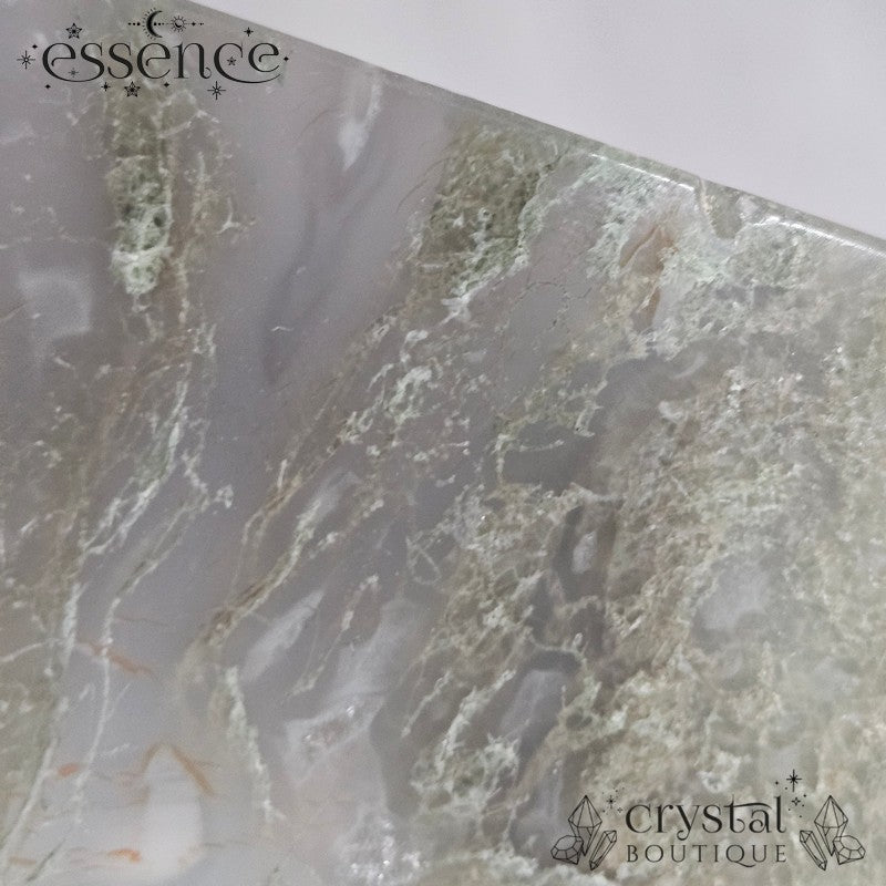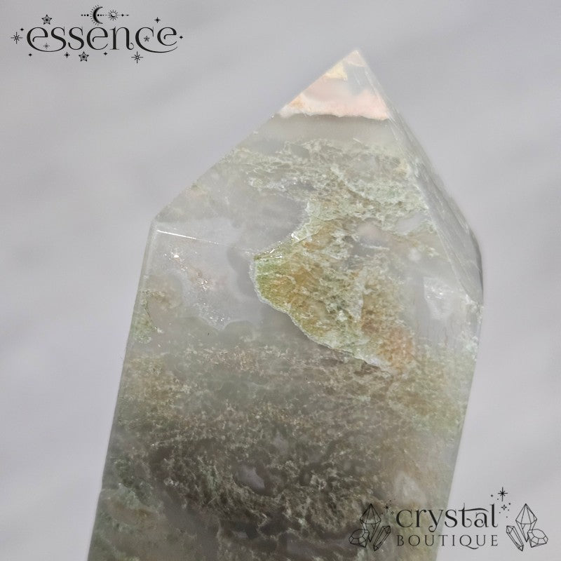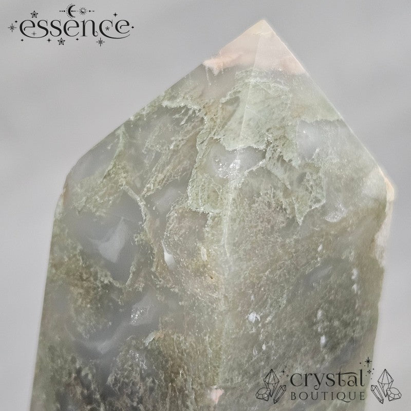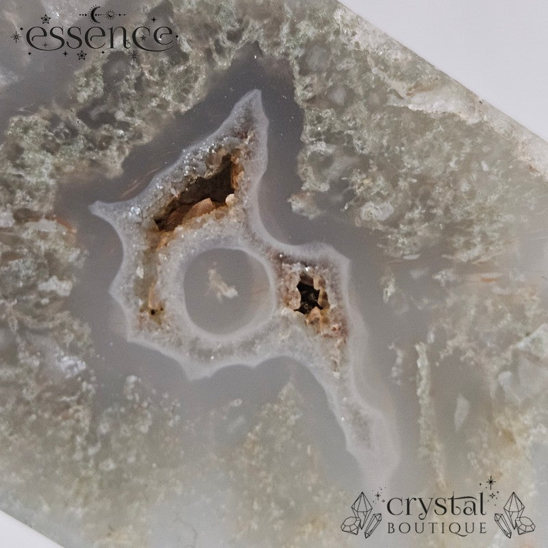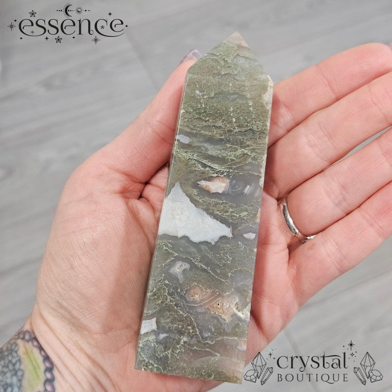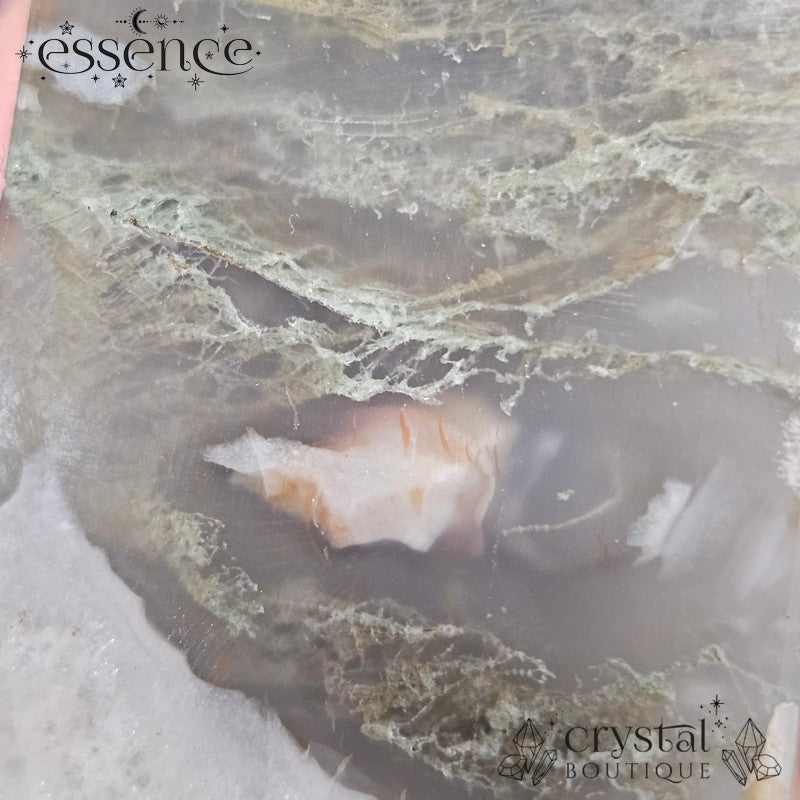 Moss Agate is formed when mineral-rich water seeps through volcanic rock, depositing layers of silica and minerals like chlorite or iron. Over time, these settle into mossy, root-like inclusions and sometimes form cavities that fill with quartz crystals—those little hidden sparkles nature leaves behind.