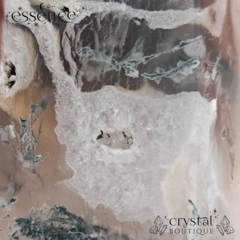 Moss Agate isn’t actually moss—it’s a quartz-based stone formed when iron and chlorite sneak their way into the crystal as it forms over thousands of years. These minerals stretch into rooty, vine-like inclusions that grow into wild natural art inside the stone. Nature doing a bit of freestyle.