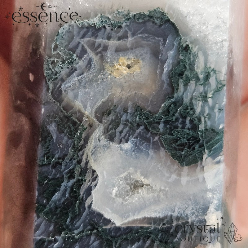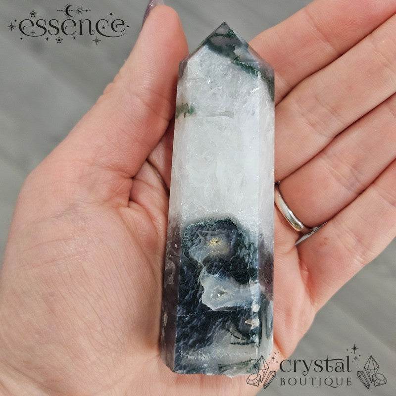 Moss Agate isn’t actually a true Agate – it’s a form of Chalcedony, with dendritic inclusions of green minerals like chlorite or hornblende that form intricate, mossy patterns within the quartz over time. No two are ever the same – each one forms organically, shaped by mineral-rich water trickling through rock cavities over millennia.
