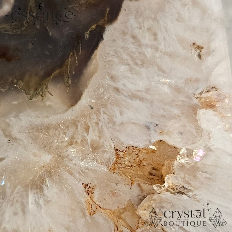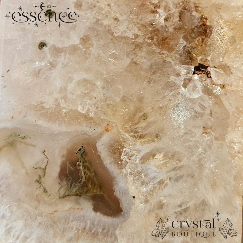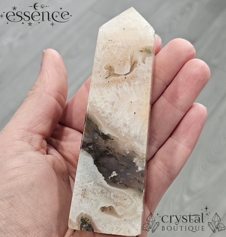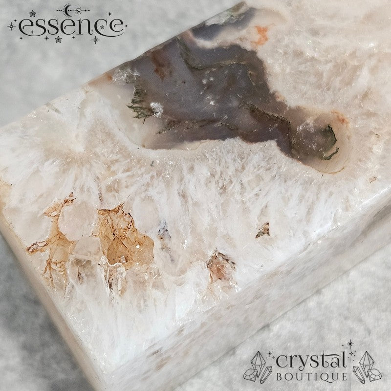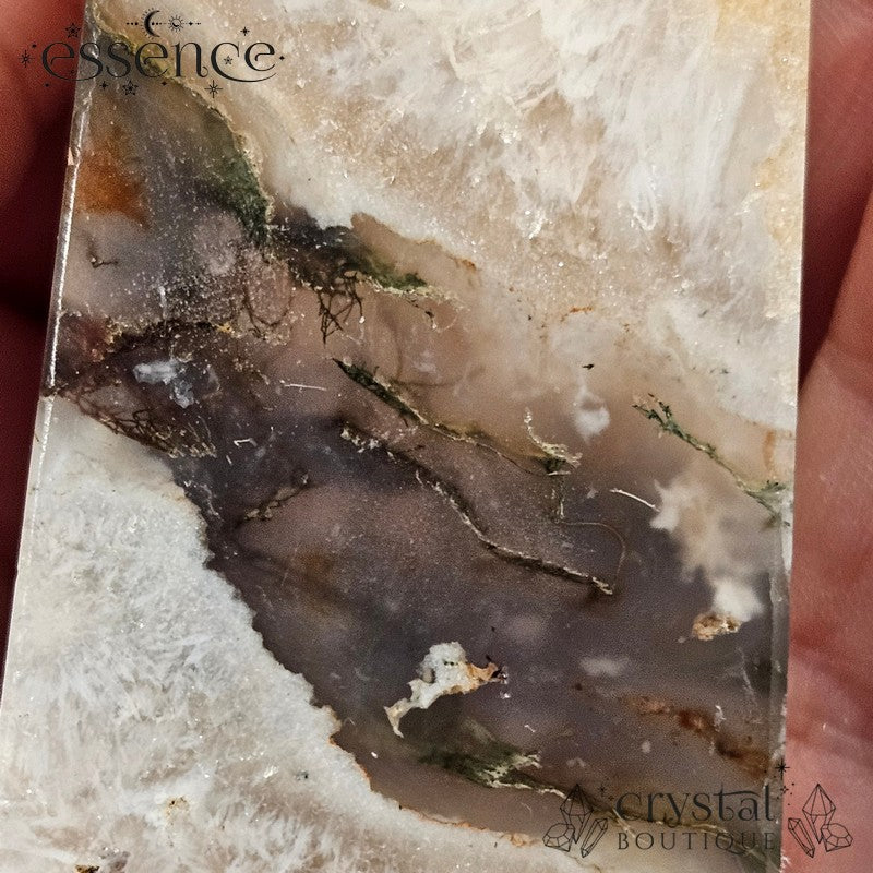 Moss Agate doesn’t actually contain moss—it’s all about the illusion. The green “plant” patterns are actually inclusions of chlorite or other minerals, formed over millions of years as silica-rich solutions slowly crystallised. This natural process locked in these wild, forest-like patterns inside the agate, giving it its calm, organic beauty.