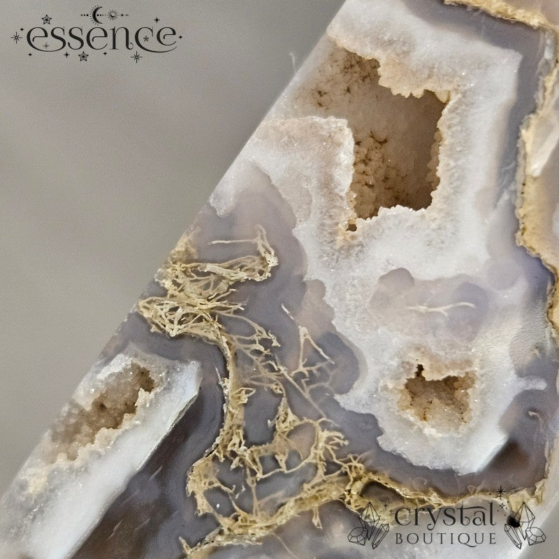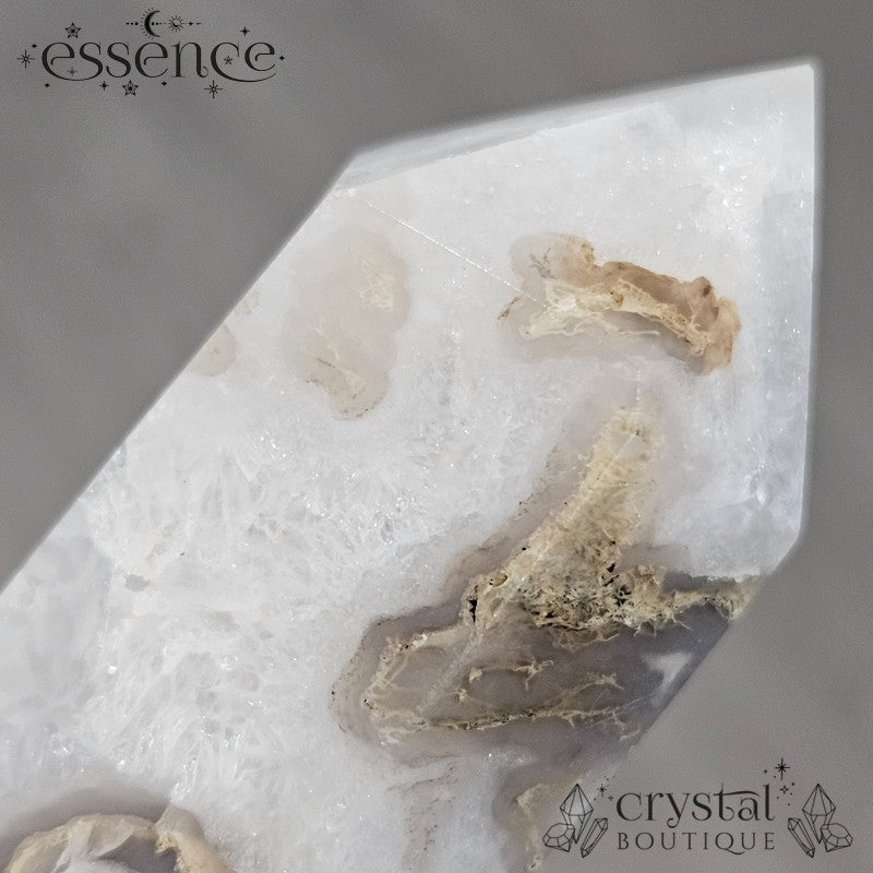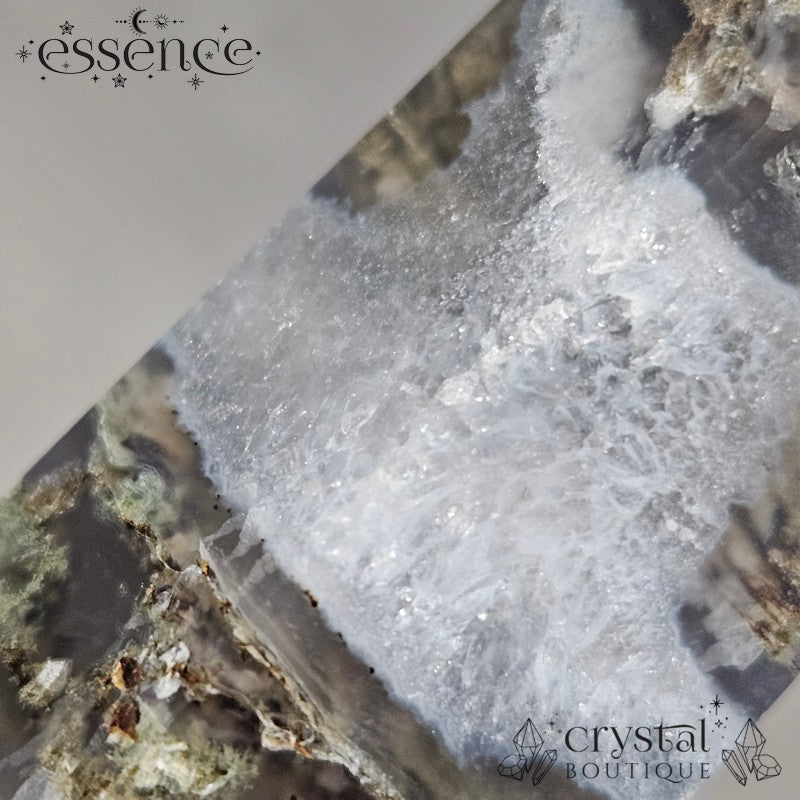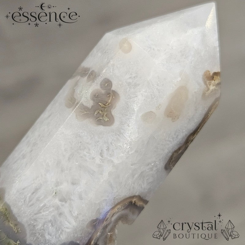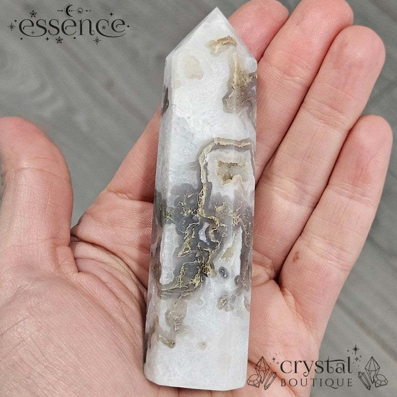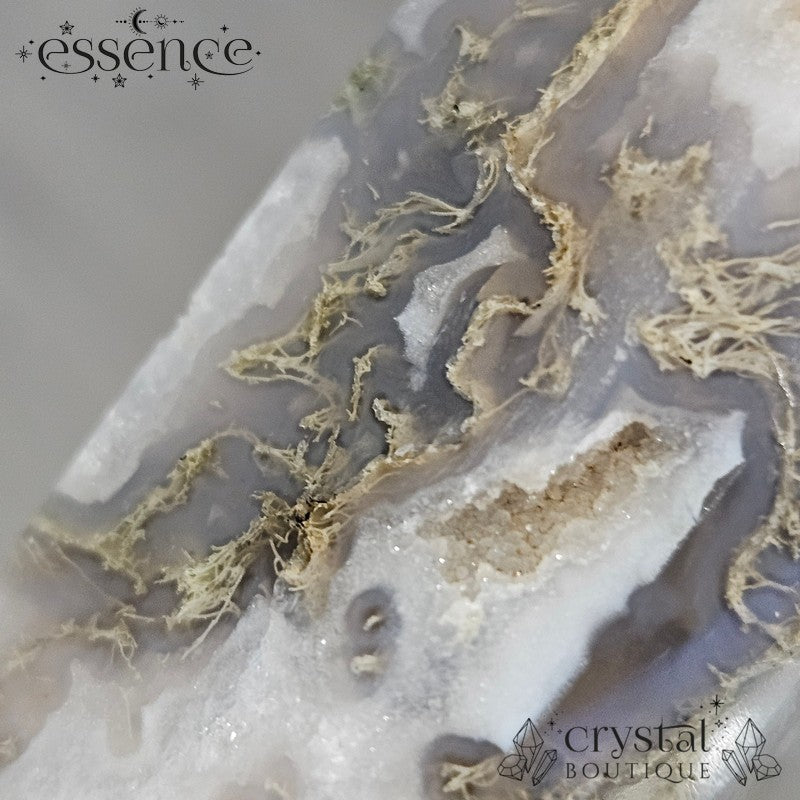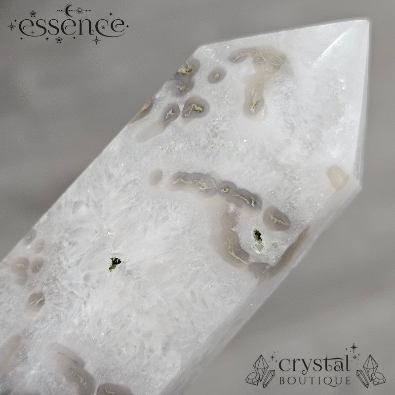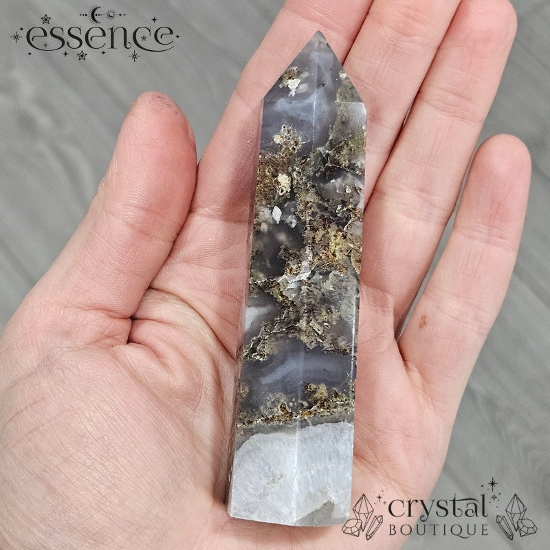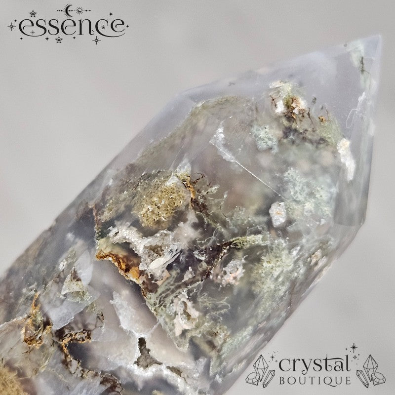 This stunning Moss Agate tower is filled with earthy greens, intricate moss-like patterns, and mesmerizing druzy details. A truly unique piece, perfect for crystal collectors and those seeking grounding, abundance, and emotional balance.