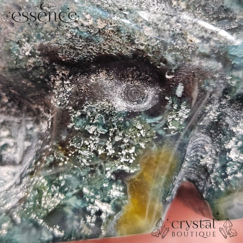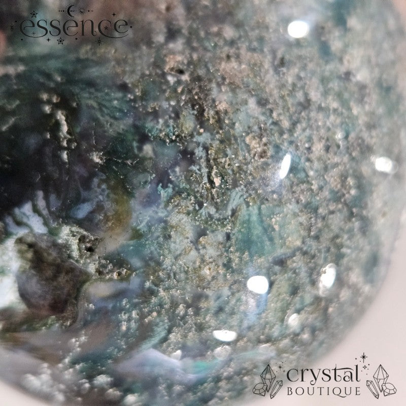 Moss Agate is found in various parts of the world but is especially prized when it includes clear formations, unique mineral patterns, and bonus sparkles like this one.