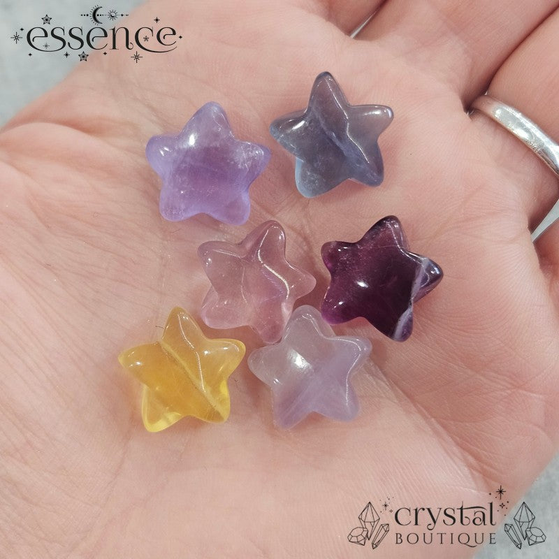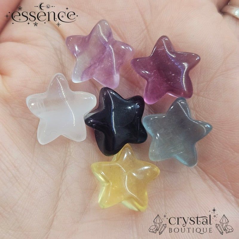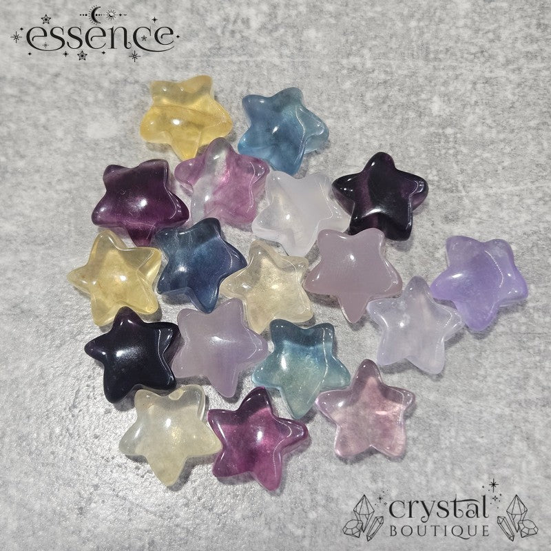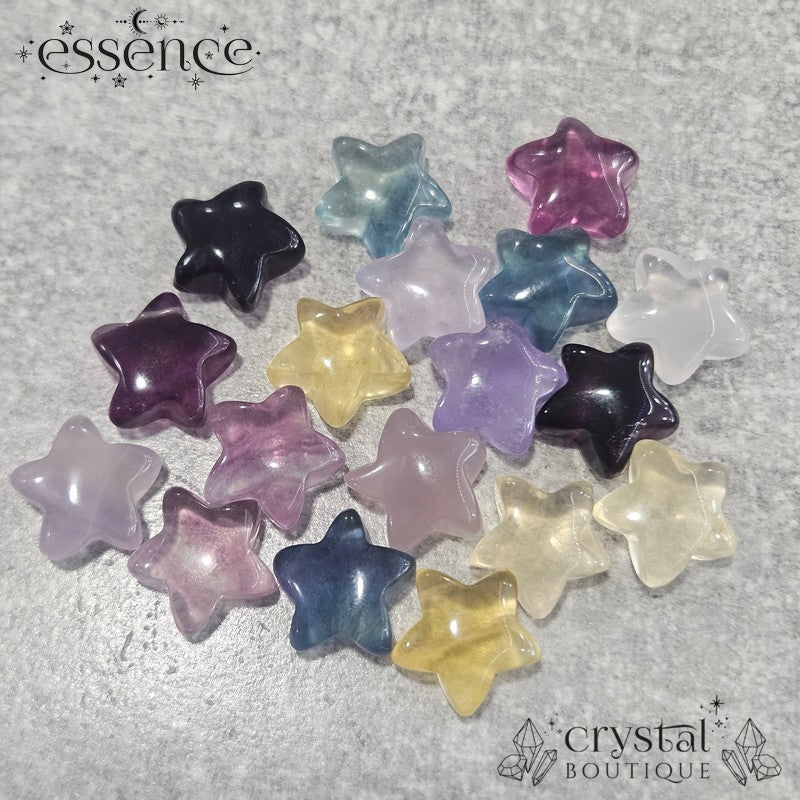 Each Fluorite star is beautifully hand-carved and polished, with no two stars exactly alike. These dazzling little stars come in a range of dreamy hues like violet, green, yellow, blue, clear, and even deep black-purple shades. But here's the twist... you won’t know which colour you’ll get until it arrives – that’s the fun of the mystery!