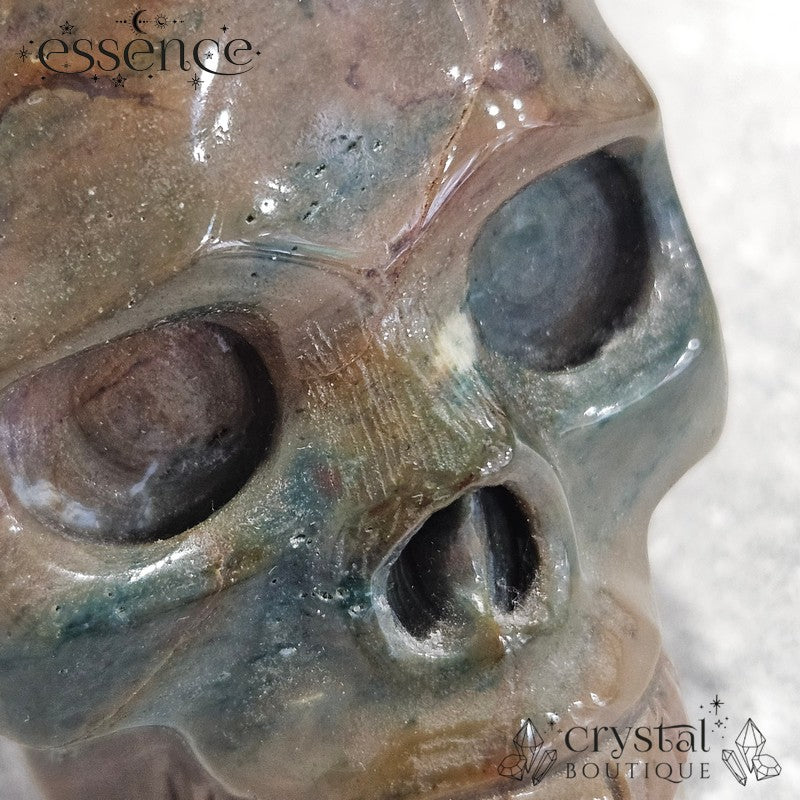 🌊 Woodland Flame. Ocean Jasper Skull –, Earthy Fire Edition 🔥💀