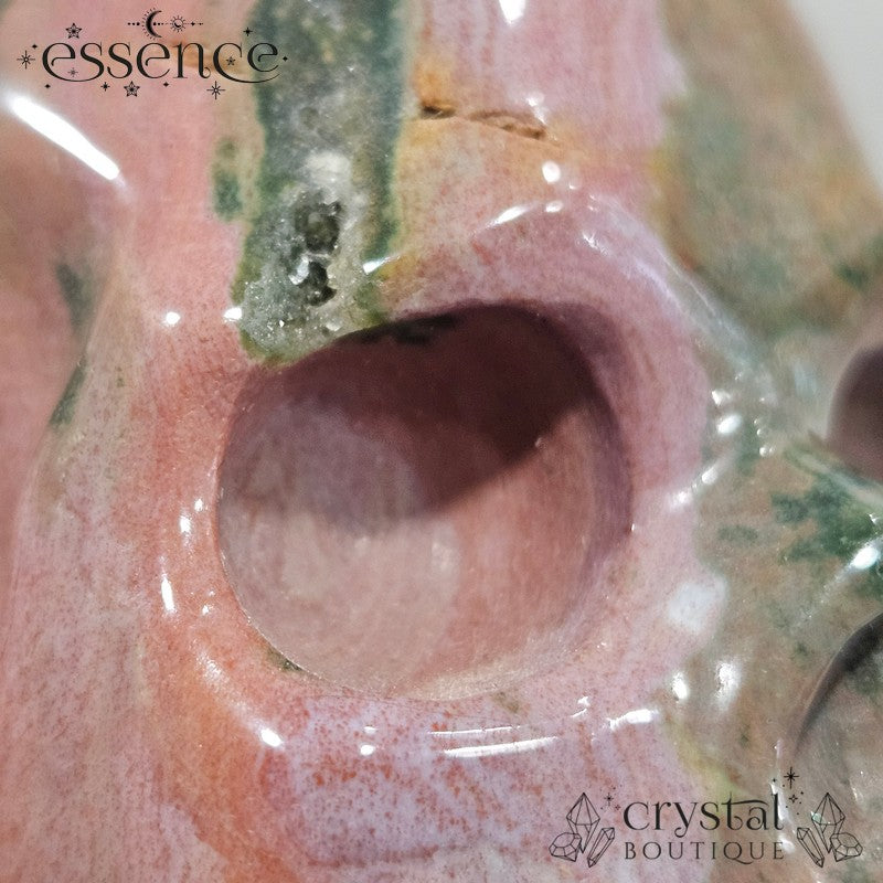Ocean Jasper is often called the “stone of gentle release”, supporting calm, patience, and emotional renewal. In skull form, this energy channels through ancient symbolism — encouraging clarity, grounding, and ancestral connection.🌿