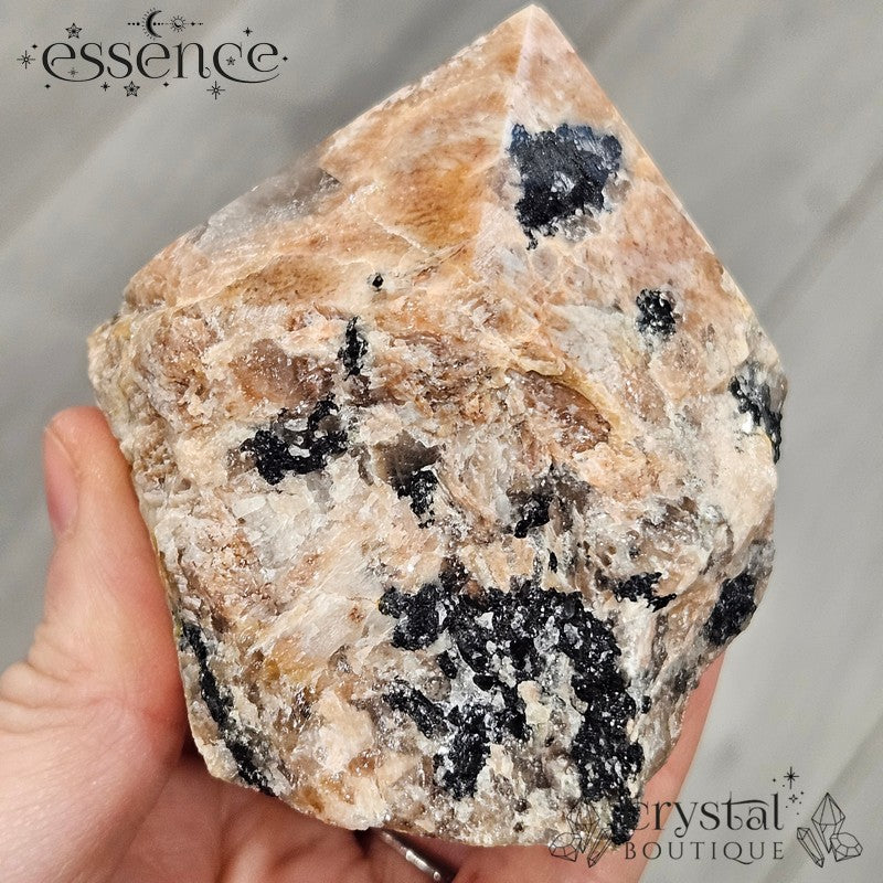 Peach Moonstone, Black Tourmaline & Smoky Quartz Cut Base – 380g