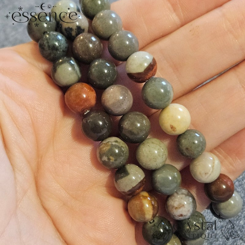 Embrace the raw, earthy energy of nature with this Polychrome Jasper Bracelet – each bead a tiny piece of ancient desert art. With swirling tones of rust, cream, forest green, and sandy beige, Polychrome Jasper is known for its stabilising, nurturing energy and deep connection to the Earth.
