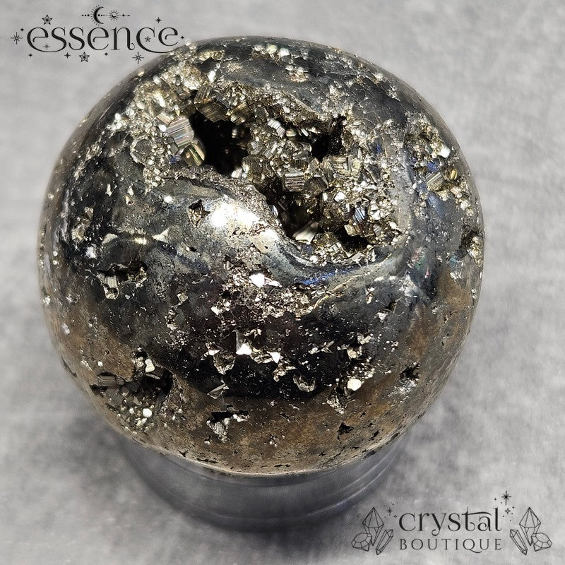 Featuring a Stunning Combination of Raw and Polished Edges, Our Pyrite Sphere is a True Work of Art! 💎