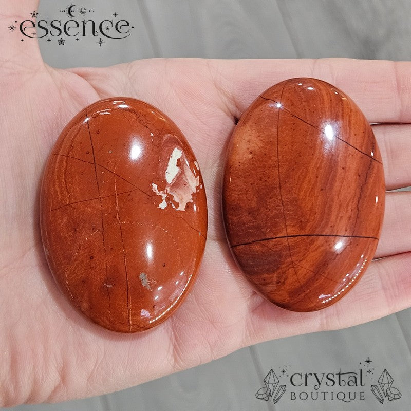 Rich, earthy, and full of natural character — these Red Jasper palm stones are all about steady energy and gentle empowerment. Formed over millions of years through sedimentary deposits rich in iron oxide, Red Jasper owes its deep, brick-red tones to the presence of hematite and other minerals that infuse each piece with its warm, grounding glow.