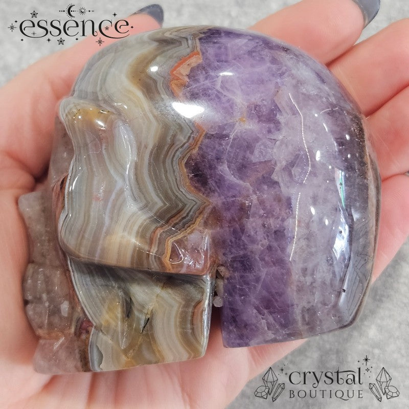๐ Layered Skull: Red Quartz, Crazy Lace Agate & Amethyst | 453g