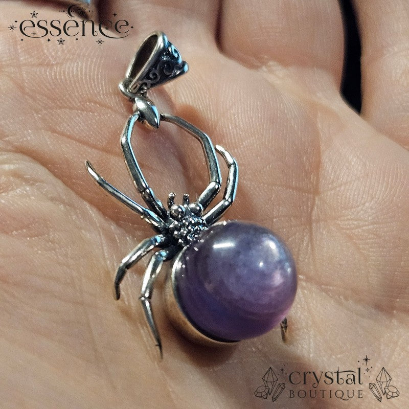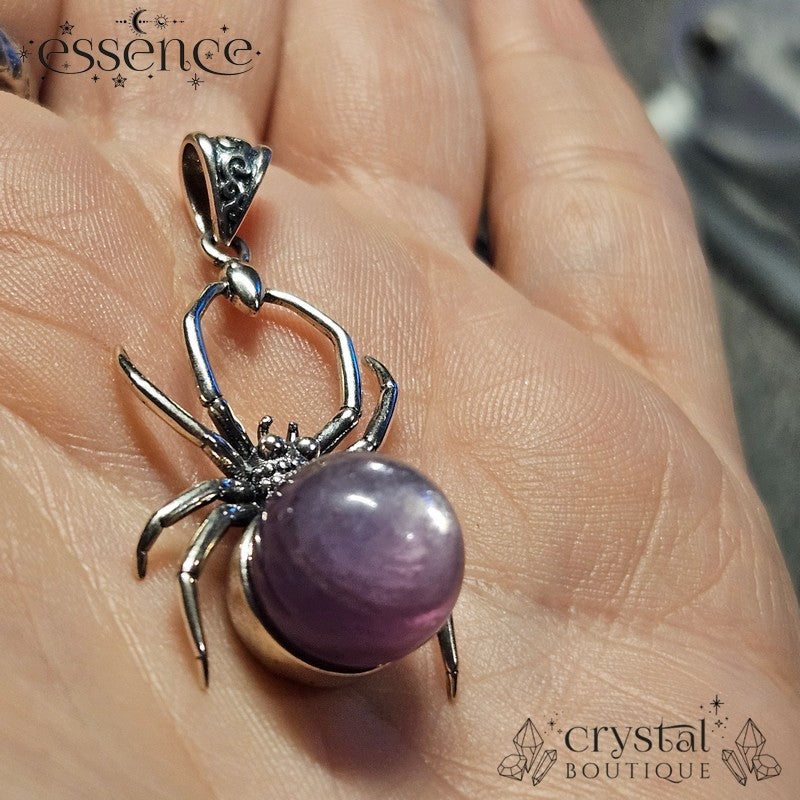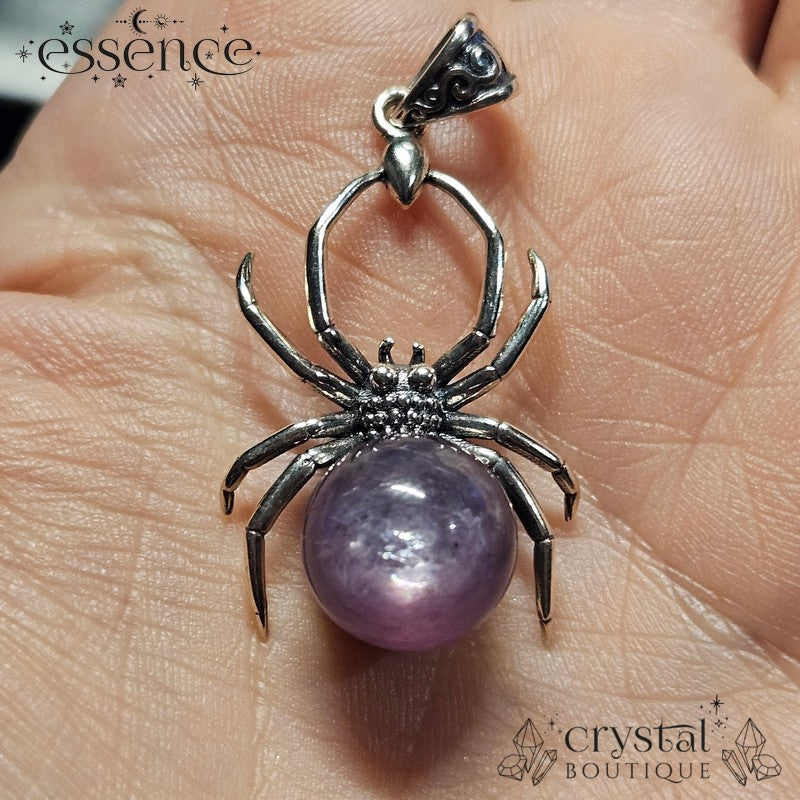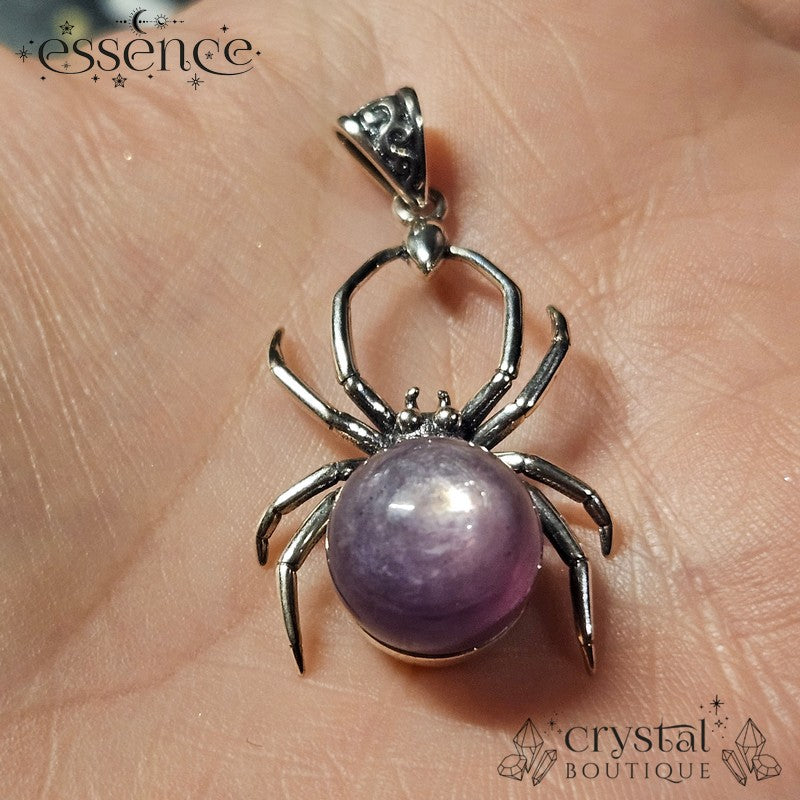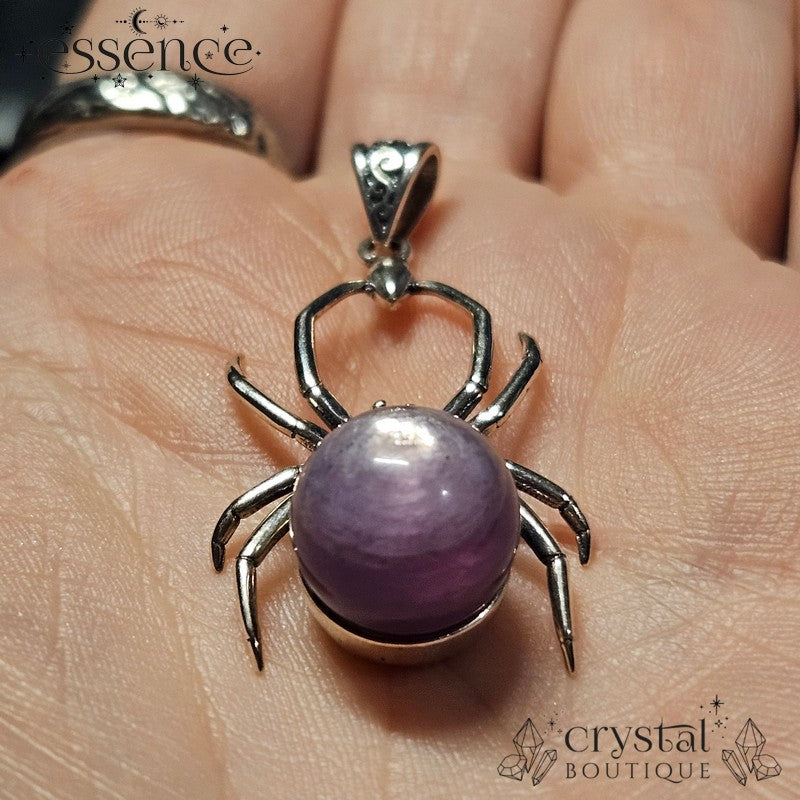 S925 Lepidolite Spider Pendant – Calm & Magic