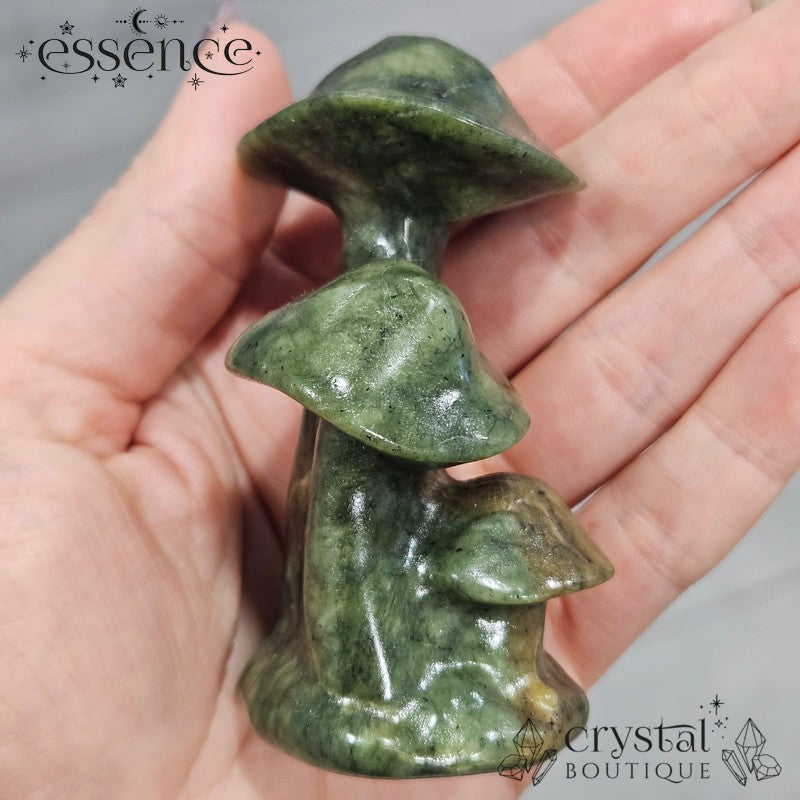 Mushrooms symbolize hidden strength, renewal, and growth in the shadows. Combined with Serpentineโs nurturing energy, this carving makes a powerful talisman for anyone on a healing or creative journey.