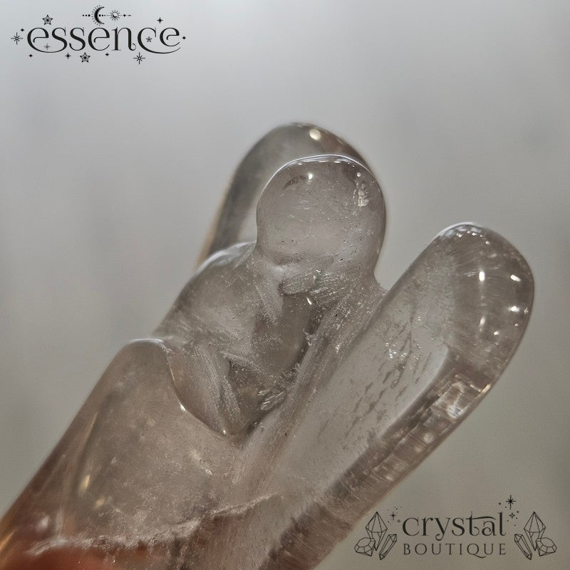 This hand-carved Smoky Quartz angel is a beautiful little protector with deep earthy energy. With softly rounded wings and subtle natural veils, this 31g piece carries grounding and clarity in equal measure.