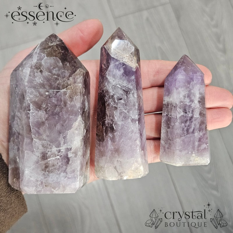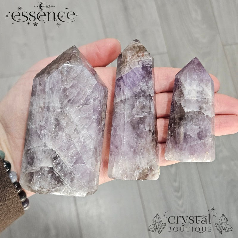These Super Seven towers have beautiful depth and character, with soft amethyst tones layered with smoky, golden and translucent areas throughout. Each piece shows natural internal textures, inclusions and colour zoning, giving them that classic “Super Seven look” people are drawn to — complex, earthy, and full of visual interest.