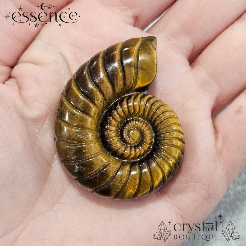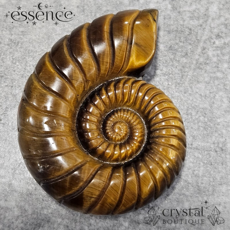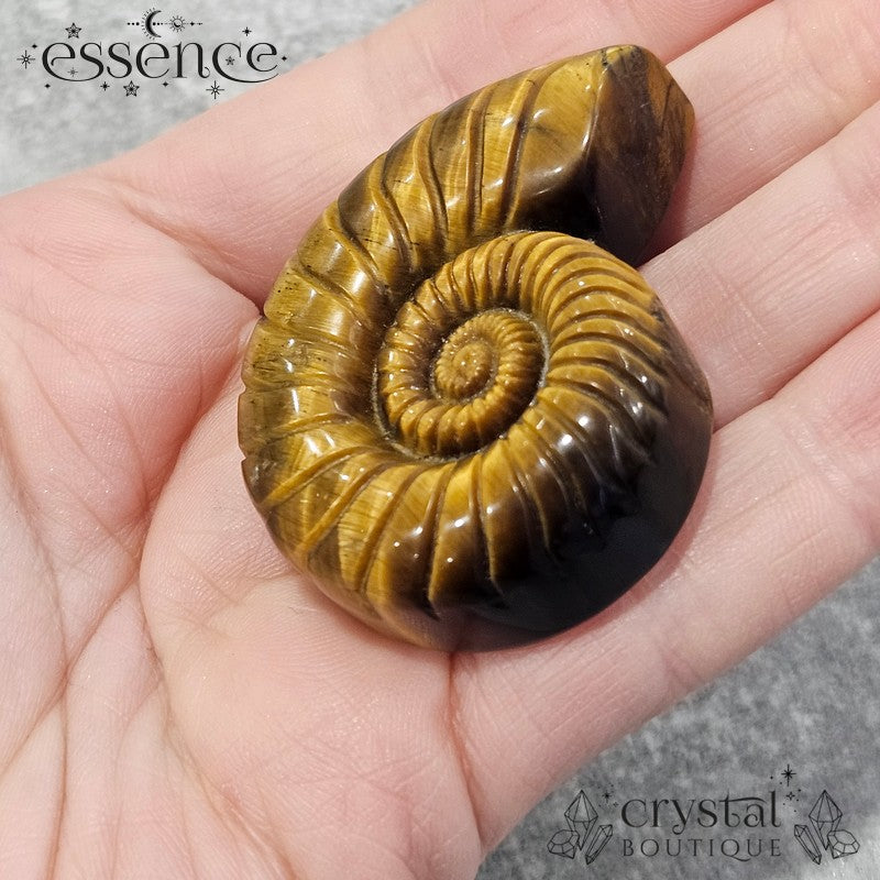 Tiger’s Eye Ammonite Carving – 47g - Confidence & Protection
