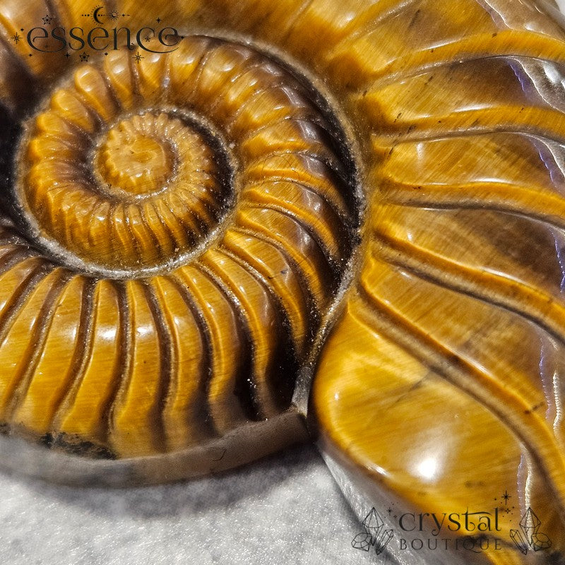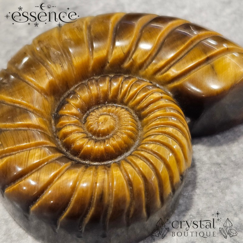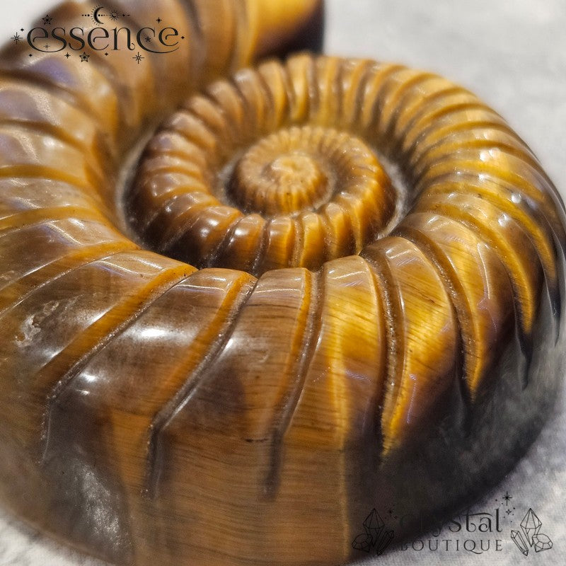 This piece is perfect for anyone who loves Tiger’s Eye or is drawn to the ancient symbolism of ammonites. Whether it’s a gift or a treat for yourself, this carving is a beautiful reminder to stay strong, keep evolving, and shine bright.