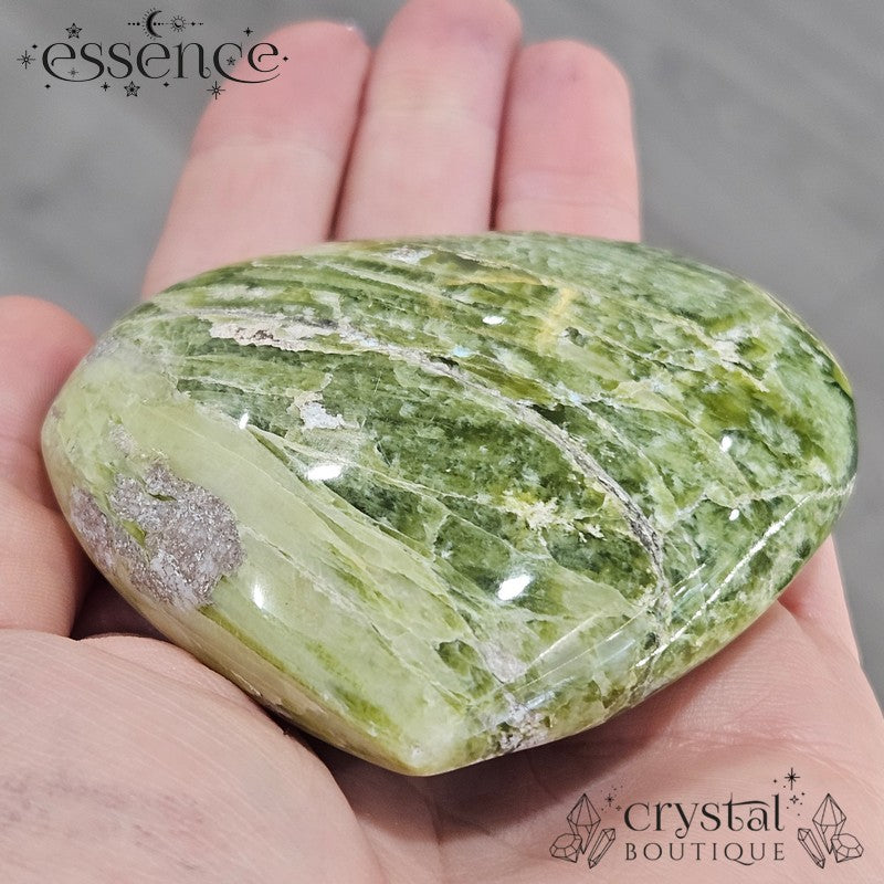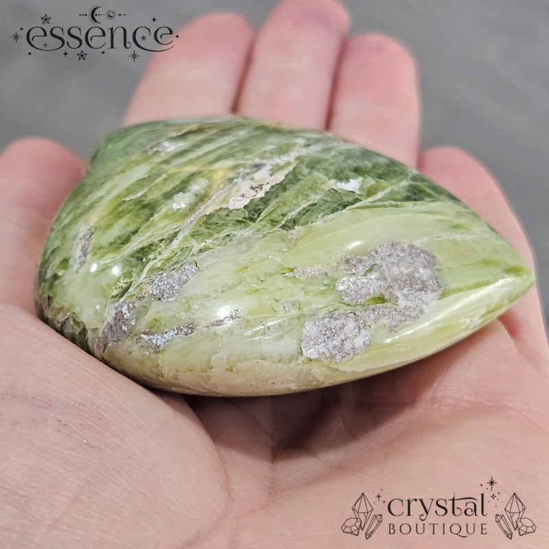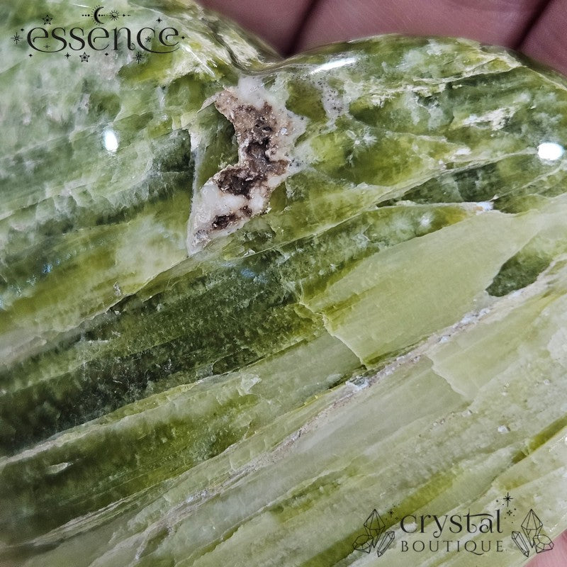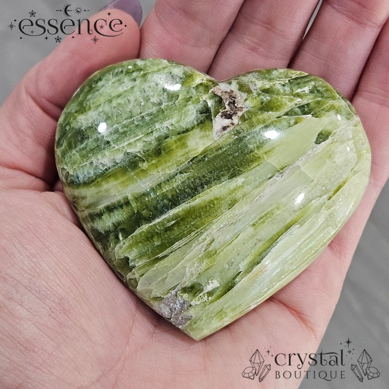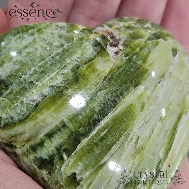 This one’s a real treasure 💚 A hand-carved Tremolite heart weighing 167g — smooth, solid, and full of grounding, soothing vibes. Tremolite isn’t a crystal you see every day, which makes this piece extra special for collectors and energy workers alike.