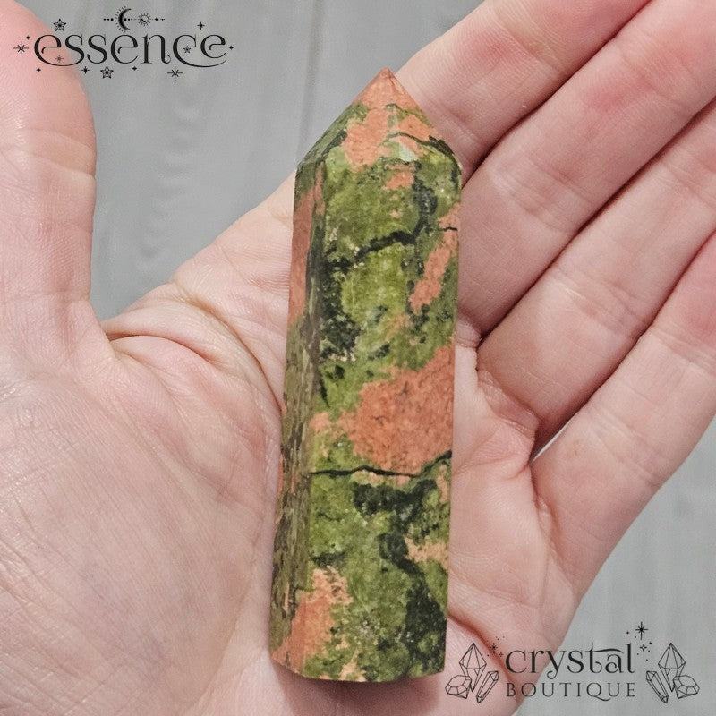 These Unakite towers are bursting with colour β bright greens and warm pinks that feel like a little dose of earthy happiness. Each one is hand-polished and full of character, showing off the natural mix of Epidote and Feldspar that makes Unakite so eye-catching.