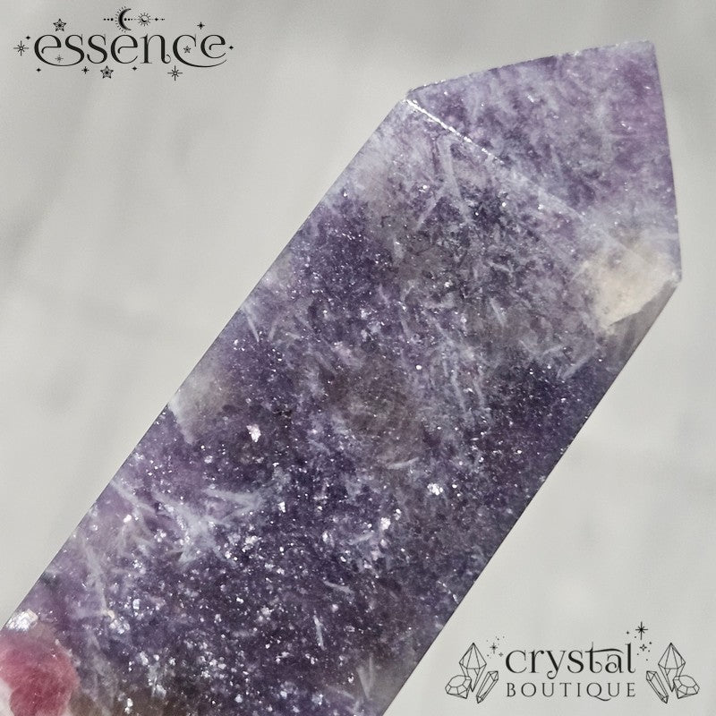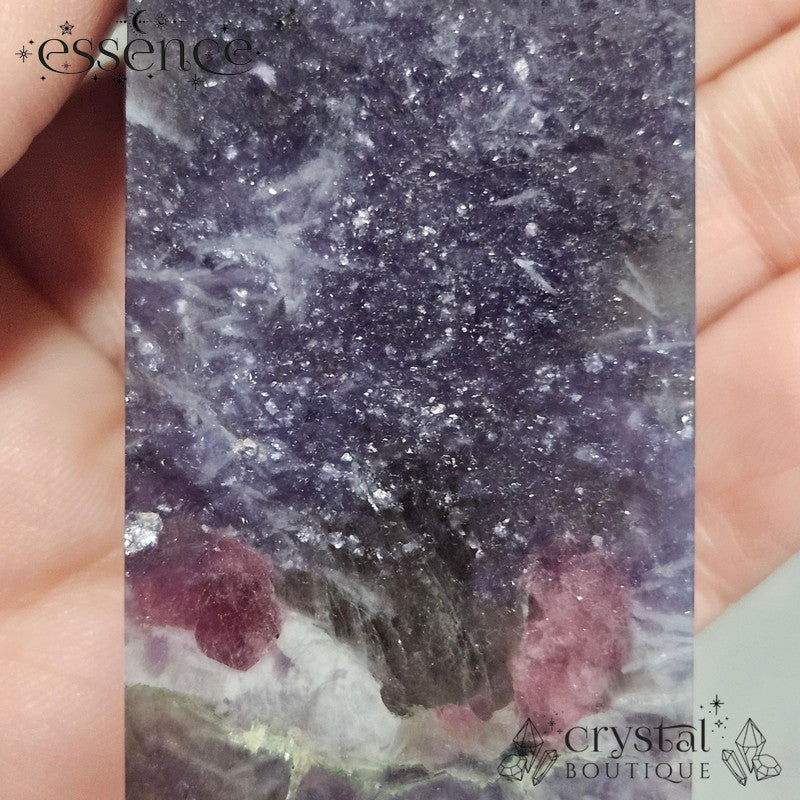 Naturally formed over millions of years, it’s a unique blend of Lepidolite, Pink Tourmaline, Smokey Quartz, and Clevelandite. These minerals come together deep within the earth, creating a harmonious combination of calming, loving, and grounding energies. Each crystal tells a story of nature’s beauty, making it perfect for anyone who wants a little extra magic straight from the earth.