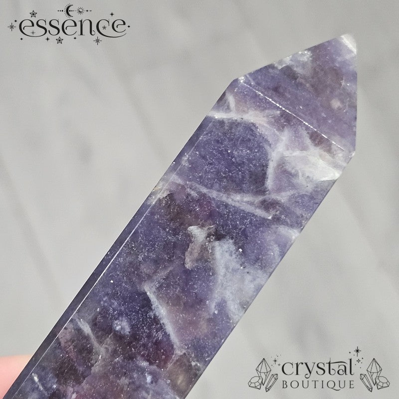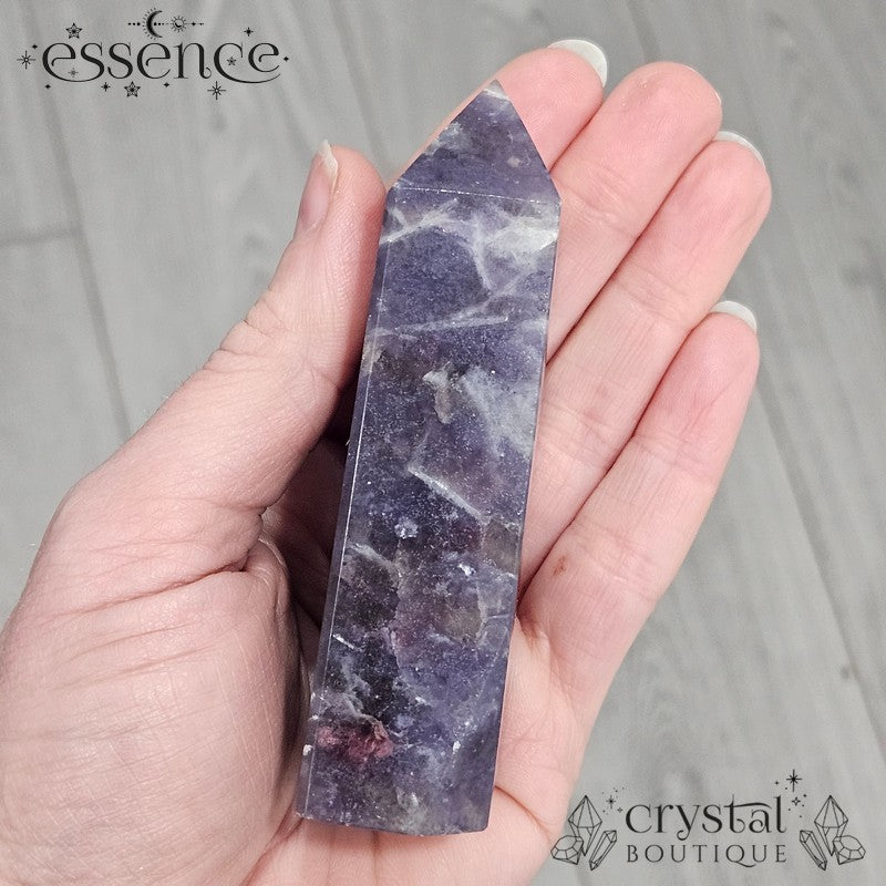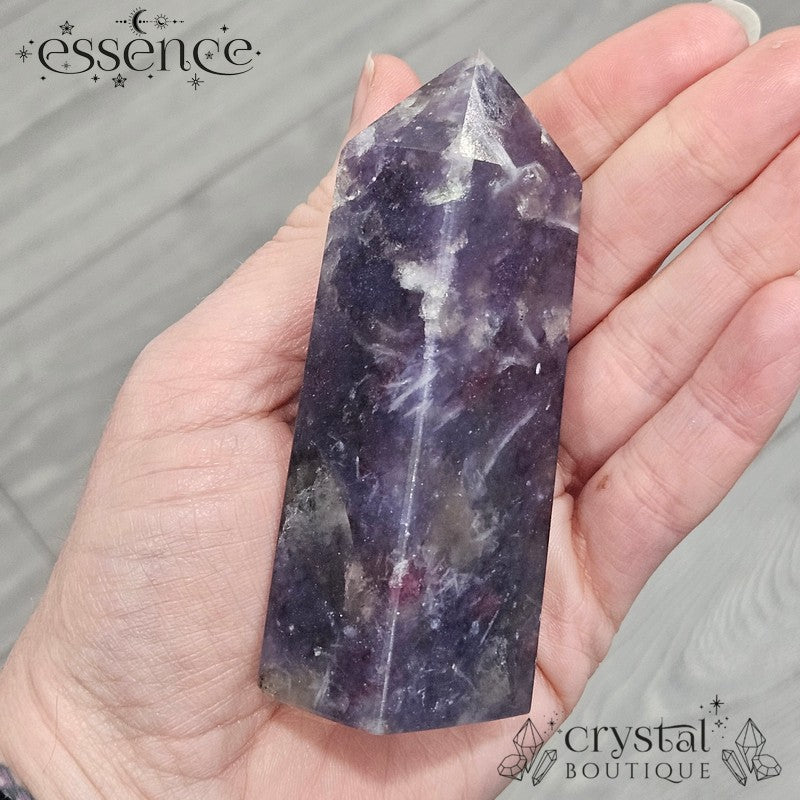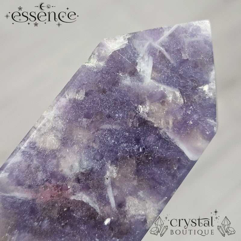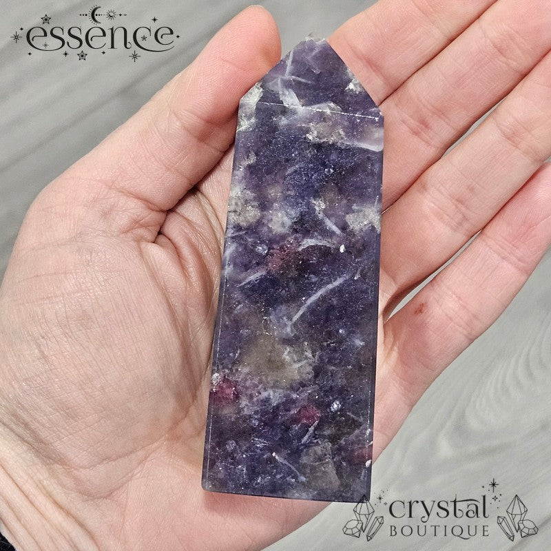 This Unicorn Stone tower is a rare and enchanting blend of Lepidolite, Smoky Quartz, and Pink Tourmaline, making it a powerhouse for emotional balance, grounding, and heart healing. The tower shape helps to focus and amplify its soothing energy, creating a sense of calm, protection, and inner strength.